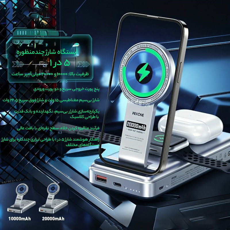 شارژ بی سیم مغناطیسی 15 وات + خروجی شارژ فوق العاده سریع 22.5 واتی