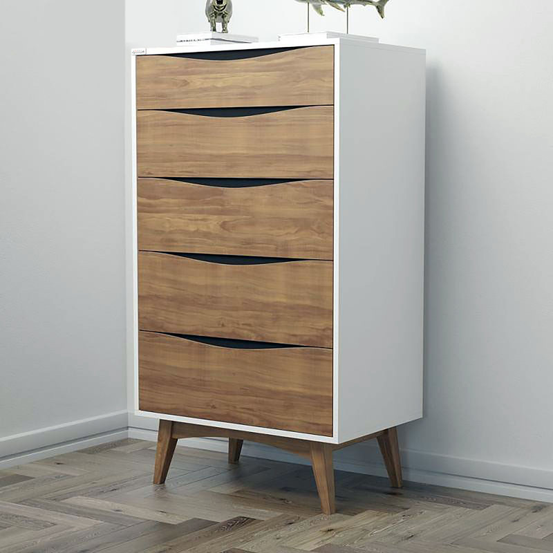 دراور هیراد مدل D121 ،با طراحی مدرن و زیبا دارای استحکام و کیفیت بی نظیری بوده و برای ساخت آن از استاندارد های اروپایی استفاده شده است. کشو های این دراور نسبتا عمیق بوده و فضای بسیار مناسبی برای قرار گیری لباس ها به وجود آورده است. با توجه به ابعاد مناسب این دراور می توان از آن به عنوان میز آرایش نیز استفاده کرد.طراحی دراور هیراد مدل D121 به سبک Mid-century است. فرم های هندسی با خطوط ظریف و استفاده از مواد طبیعی در محصولات از شاخصه های بارز این سبک طراحی است. این محصول با این هدف طراحی شده که با انواع دکوراسیون همخوانی داشته باشد.جنس محصول ملامینه می باشد ابعاد محصول به این شرح می باشد طول 70 عرض 45 ارتفاع 130 .