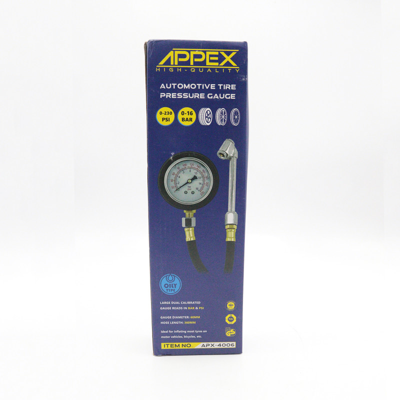 درجه باد روغنی اپکس یکی از پرکاربردترین لوازم داخل هر خودرویی میباشد و شما باید حتما یک عدد از این درجه بادها را داخل خودرویتان داشته باشید . درجه باد روغنی میشلن به دلیل شناور بودن عقربه آن داخل روغن مخصوص به هیچ عنوان دقت و کارایی خودش رو از دست نخواهد داد و شما مصرف کننده گرامی حتما باید هر هفته یکبار باد لاستیک های خودرویتان را با درجه باد چک کنید چرا که عمر مفید لاستیک را باد لاستیک تعیین میکند که اگر شما لاستیک را در حالت کم باد و یا پر باد استفاده کنید عمر لاستیک شما کمتر خواهد ش
