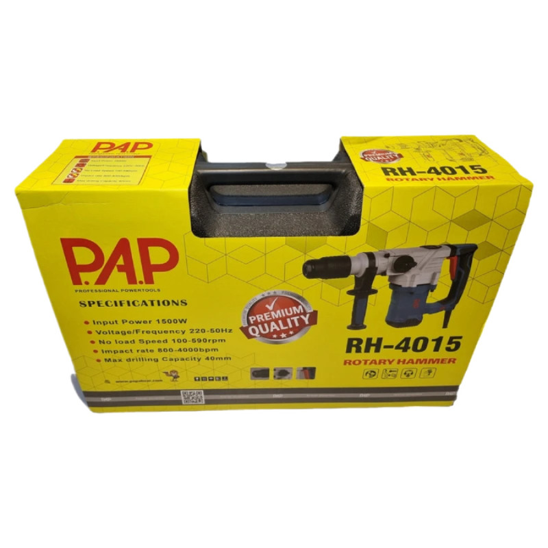 1500 وات است. قدرت تخریب: 7 کیلوگرم است. عملکرد دوگانه (چکش و دریل چکشی) ابزار گیر پنچ شیاردارد به دیمر کنترل سرعت مجهز است. سرعت بی باری 590 دور بر دقیقه است. حداکثر تعداد ضربه 4000 بار در دقیقه است. حداکثر قطر سوراخکاری در بتن 40 میلی متر می باشد. قدرت ضربه 10 ژول می باشد. همراه با یک عدد مته 250*180 میلی متر پنج شیار همراه با یک عدد قلم نوک تیز 280 میلی متر پنج شیار همراه با یک جفت ذغال می باشد. کیف حمل BMC دارد.