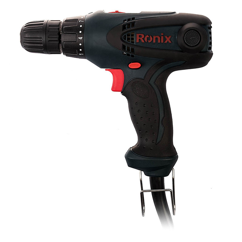دریل پیچ گوشتی برقی «Ronix» «رونیکس» را مشاهده می‌کنید. این محصول تحت عنوان مدل (2513T) در بازار موجود است. وزن این دریل پیچ گوشتی 1.3 کیلوگرم است و منبع تغذیه آن برق است. ولتاژ ورودی آن 220 ولت است و قابلیت کنترل سرعت گردش آزاد بین 0 تا 440 و همچنین 0 تا 1650 دور بر دقیقه را دارد. این دستگاه دارای مشخصاتی از قبیل قابلیت تنظیم گشتاور در 18+1 حالت مختلف، لامپ LED در حال کار بودن دستگاه و دکمه کم و زیاد کردن سرعت است. حداکثر قطر سوراخ‌کاری در چوب و فلز این دستگاه به‌ترتیب 26 و 10 میلی‌متر است. دریل پیچ گوشتی رونیکس همچنین مجهز به قلابی مخصوص برای آویزان کردن دستگاه است. طول کابل برق این ابزار 2 متر است و سه نظام آن قابل تنظیم برای انواع مته‌های 1 تا 10 میلی‌متری است. دریل پیچ گوشتی رونیکس با مدل 2513T گزینه مناسبی برای افرادی است که به دنبال محصولات با کیفیت هستند.