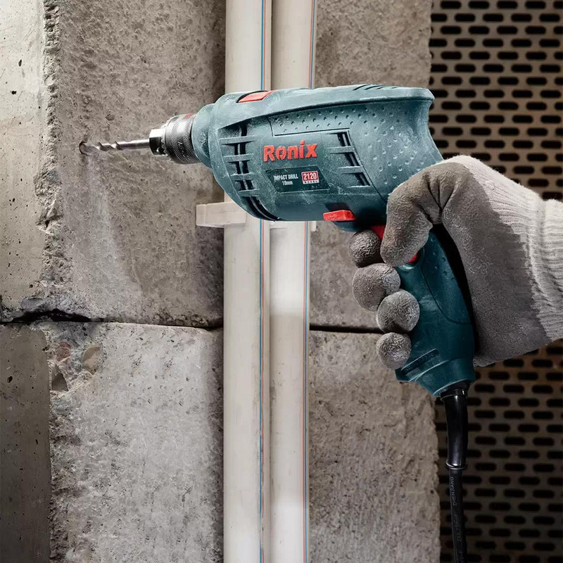 | سایر توضیحات | Ronix 2120 Impact Drill توان : 750 وات سه نظام 10 میلی متری آچاری سیستم جدید تعبیه آچار به صورت خشابی بر روی کابل برای سهولت استفاده دسته جانبی ضد لرزش موتور پر قدرت 750 وات مجهز به آرمیچر و بالشتک های صنعتی تولید شده توسط دستگاه های تمام اتوماتیک استفاده از سیستم بلبرینگی دوبل در قسمت شفت جهت اثر بخشی بالا در حین کار کلید الکترونیک راست گرد – چپ گرد و ضد غبار مطابق با استاندارد TUV سیستم کروی اتصال کابل جهت جلوگیری از استهلاک حین کاربری و طول عمر ضمانت 12 ماهه شرکت رونیکس |