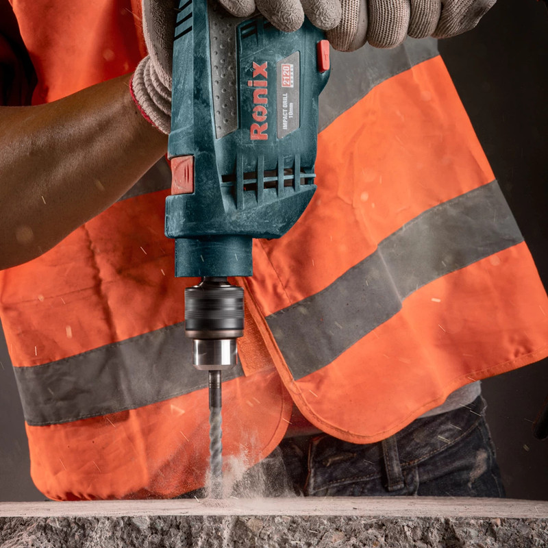دریل چکشی رونیکس مدل 2120 دارای سه نظام 10 میلیمتری تمام فلزی و آچار خور می باشد که دارای قطر سوراخکاری در چوب تا 30 میلیمتر ، قطر سوراخکاری در فولاد 10 میلیمتر ، و قطر سوراخکاری درسنگ و بتن تا 10 میلیمتر است .