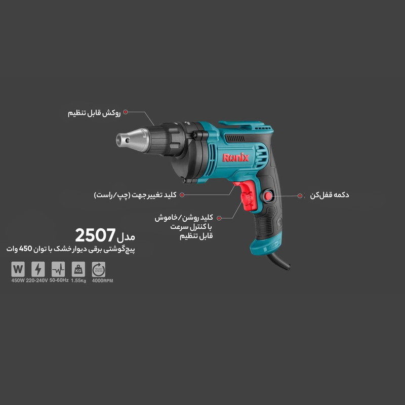 | سایر توضیحات | سایز ابزار گیر : 6.35 میلیمتر / مجهز به روکش تنظیم جهت تنظیم بسته شدن عمق پیچ |