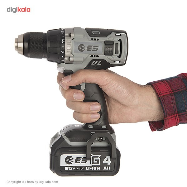 محصولی که مشاهده میکنید دریل پیچ گوشتی مدل (GH218TBL) از سری تولیدات شرکت «ای اس» (ES) در کره است. کالاهای برند ES، درواقع محصولات شرکت نام آشنای الجی در بخش ابزارآلات صنعتی هستند. مهمترین ویژگی این دریل سیستم گردش موتور آن است. این مدل قابلیت گردش به دو طرف چپ و راست را دارد که کمک میکند تا آن را بهعنوان پیچگوشتی بهکاربرد. با قراردادن دریل در حالت راست گرد میتوان برای بستن و چپ گرد برای باز کردن پیچ استفاده کرد. انرژی مورد نیاز این دریل از طریق باتری لیتیوم یونی تامین میشود. این باتری 4 آمپرساعت ظرفیت دارد و میزان ولتاژ ورودی برای شارژ این باتری 18 ولت است. یکی دیگر از مزیتهای این محصول قابلیت تنظیم سرعت آن است که دارای دوحالت صفر تا 560 و صفر تا 1900 است. در وضعیت اول میتوان از دستگاه بهعنوان پیچگوشتی و در وضعیت دوم میتوان بهعنوان دریل استفاده کرد. سه نظام این دریل از نوع خودکار 13 میلیمتری است و قابلیت سوراخکاری بهقطر 13 میلیمتر در فلزات را دارد. بهمنظور کارکرد در فضاهای کمنور هم یک لامپ LED کوچک در قسمت جلویی دستگاه تعبیه شده است. این دستگاه بههمراه یک کیف حمل، شارژر، باتری اضافه و دفترچه راهنما ارائه میشود.