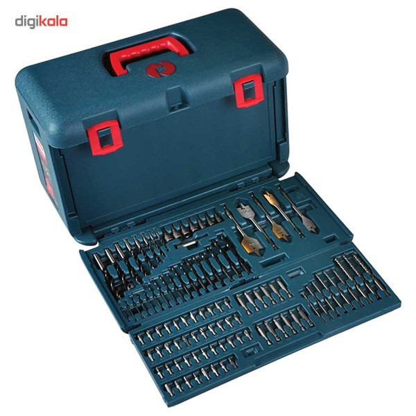 | مشخصات اقلام همراه | - دارای 100 قلم لوازم جانبی شامل: 1. متهها: 17 عدد متهی فلز در قطرهای (2×)2، 2.5، (2×)3، 3.5، (2×)4، 4.5، (2×)5، 5.5، (2×)6، 6.5، 7 و 8 میلیمتر 9 عدد متهی الماسه در قطرهای 4، 5، 5.5، (2×)6، 7، 8، 9 و 10 میلیمتر 8 عدد متهی چوب در قطرهای 3 تا 10 میلیمتر 5 عدد متهی پروانهای (برگی) در قطرهای 16، 20، 22، 25 و 32 میلیمتر 2. سریهای پیچگوشتی با طول 25 میلیمتر: 6 عدد سری دوسو در سایزهای SL8-10، Sl6-8 و SL10-12 هر کدام 2 عدد 9 عدد سری چهارسو در سایزهای PH2(×4)، PH1(×2) و PH3(×3) 10 عدد سری چهارسوی خاردار در سایزهای PZ2(×5)، PZ1(×2) و PZ3(×3) 9 عدد سری ستارهای در سایزهای T30، T25(×2)، T20(×3)، T15، T10 و T40 4 عدد سری آلنی در سایزهای 3 تا 6 میلیمتر 3. سریهای پیچگوشتی با طول 50 میلیمتر: 3 عدد سری دوسو در سایزهای SL8-10، Sl6-8 و SL10-12 3 عدد سری چهارسو در سایزهای PH2، PH1 و PH3 3 عدد سری چهارسوی خاردار در سایزهای PZ2، PZ1 و PZ3 3 عدد سری ستارهای در سایزهای T30، T25، T20 4. یک عدد اضافهشوندهی مغناطیسی 5. سری بکس: 4 عدد سری با استاندارد متریک در سایزهای 5، 6، 8 و 10 میلیمتر 3 عدد سری با استاندارد SAE در سایزهای 1/4، 5/16 و 3/8 اینچ |