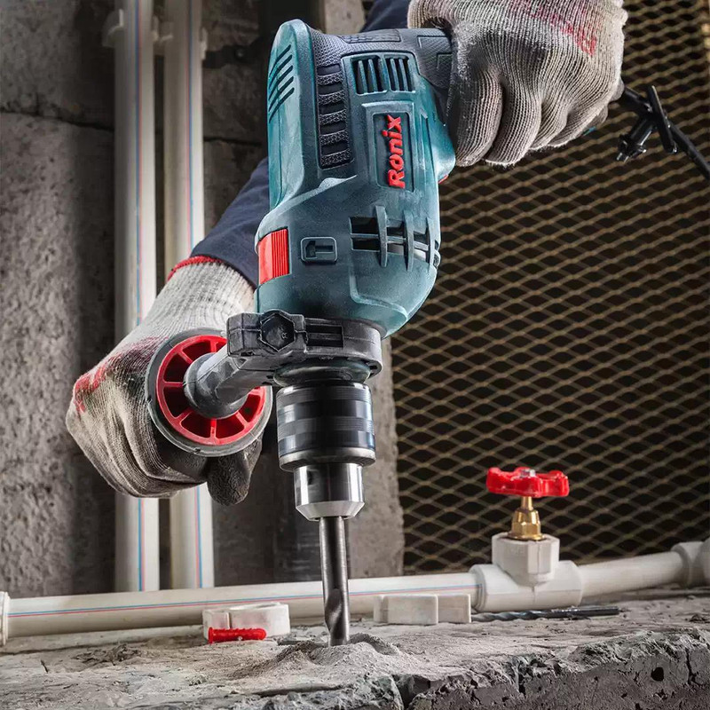 در دریلهای چکشی علاوهبر چرخش مته میتوان از قابلیت چکشی یا ضربهای آن هنگام سوراخکاری استفاده کرد. دریل چکشی مدل 2211P، تنها یک نمونه از مجموعه دریلهای چکشی متنوع و قدرتمند رونیکس است که با موتور صنعتی 600 وات کار میکند و آرمیچر و بالشتکهای صنعتی آن مطابق با معتبرترین استانداردهای دنیا ساخته شدهاند.
