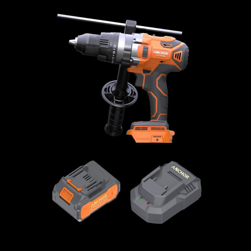 دریل شارژی آنکور انتخابی ایدهآل برای سه عملکرد سوراخکاری، پیچکاری و سوراخکاری چکشی است. این ابزار شارژی کاربردی و قدرتمند، بر خلاف سایر همتایان خود در بازار که دارای سه نظام 10 میلیمتری هستند، از سه نظام 13 میلیمتری بهره میبرد..دریل چکشی شارژی براشلس 20 ولت آنکور تک باتری مدل DCE2 دارای یک موتور براشلس صنعتی و مقاوم به رطوبت و غبار قوی با گیربکس دو سرعته است که سه نظام اتوماتیک 13 میلیمتری آن را برای فعالیتهای صنعتی مختلف با دو دور تند و کند به گردش در میآورد.