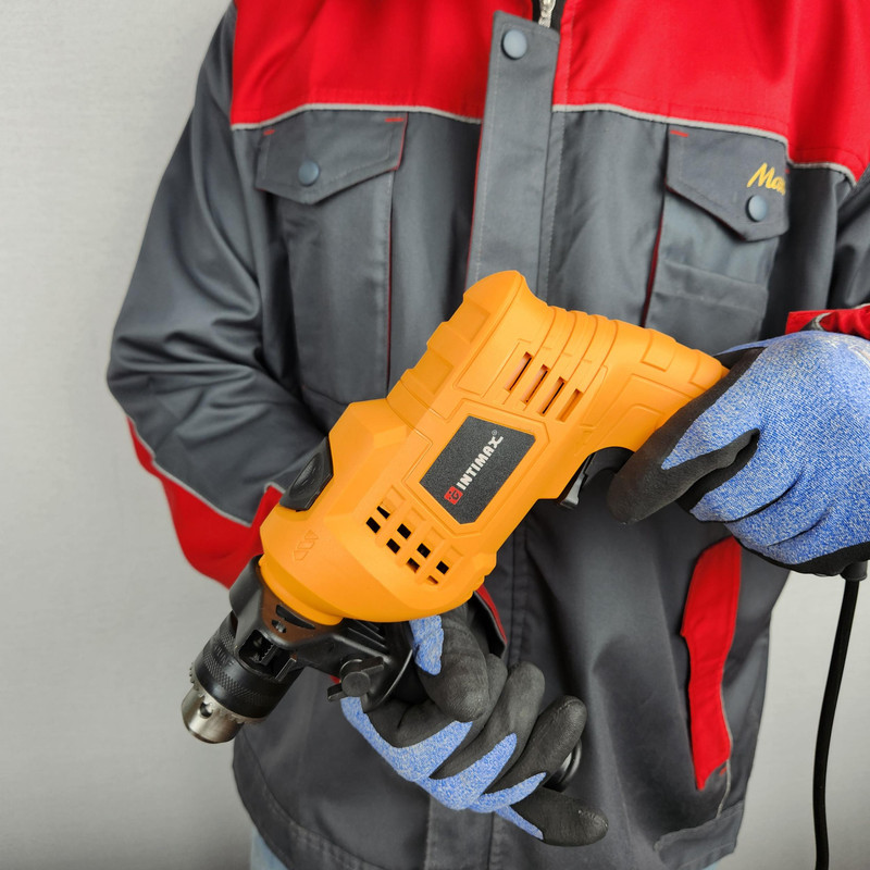 دریل فوق از شرکت اینتیمکس نیروی خود را از طریق برق شهری تامین میکند. بیشینه سرعت دوران این دریل 3000 دور بر دقیقه است. این دریل توانایی چرخش در دو جهت را دارد. با استفاده از این دریل قادر خواهید بود سوراخهایی حداکثر با قطر 13 میلیمتر در فلز و 13 میلیمتر در سیمان و تا 35 میلیمتر در چوب ایجاد کنید. این دریل با داشتن قابلیت چکشی و توان 1200 الی 2000 وات دریلی مناسب برای مصارف خانگی و تجاری است. این دریل مجهز به دسته جانبی دورانی و نیز شاخص عمق سنج نیز است. نحوه استفاده از قابلیت چکشی روی این دریل طوری طراحی شده که بتوان با کمترین نیرو، از حال معمولی به حالت چکشی تغییر وضعیت داد. این دریل از کیفیت بسیار مطلوبی برخوردار می باشد.