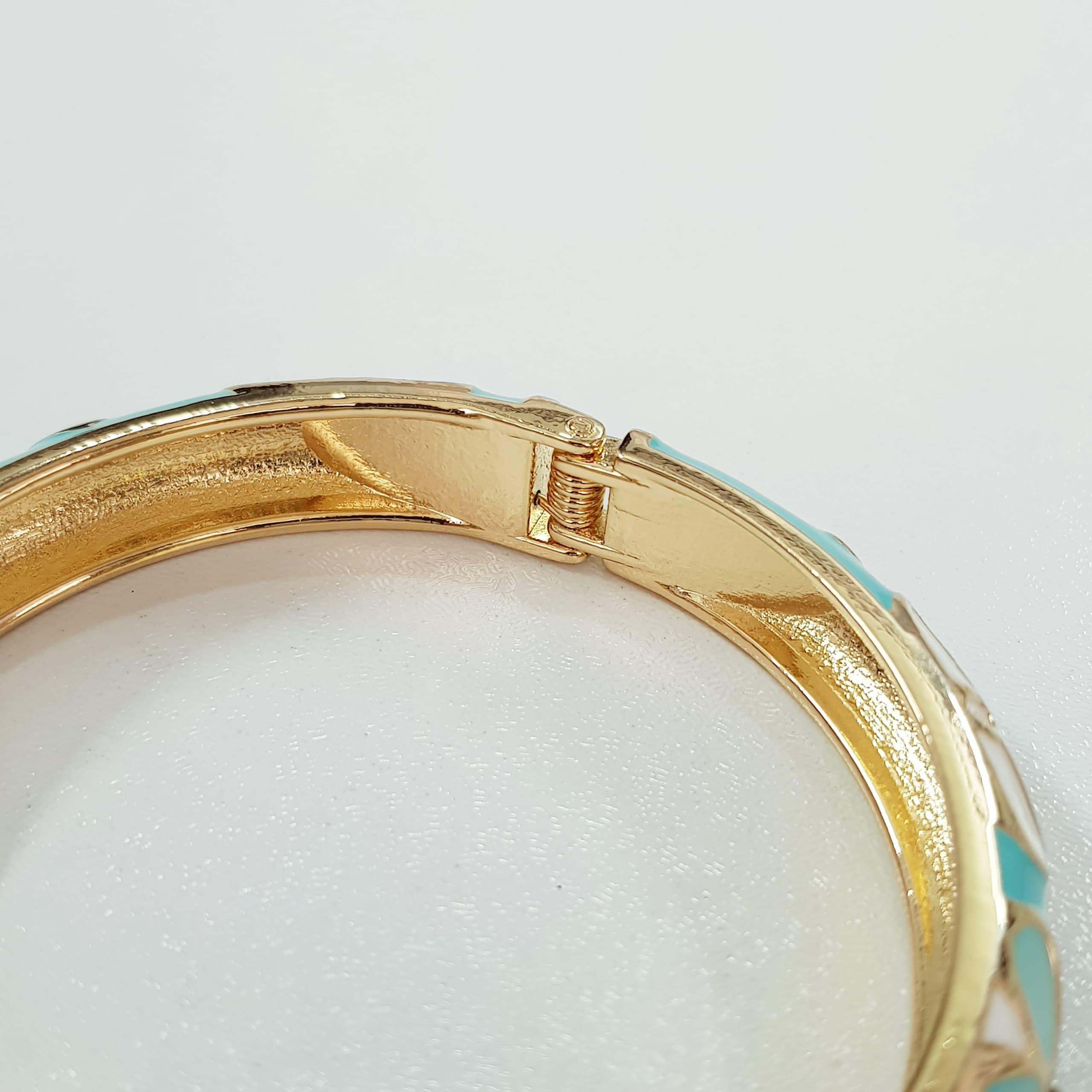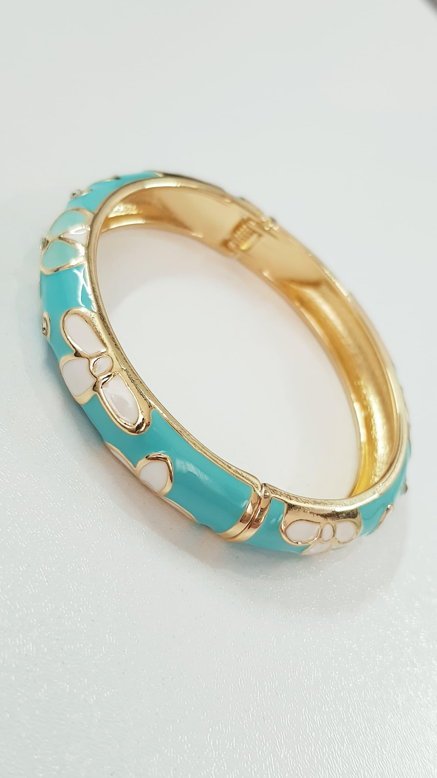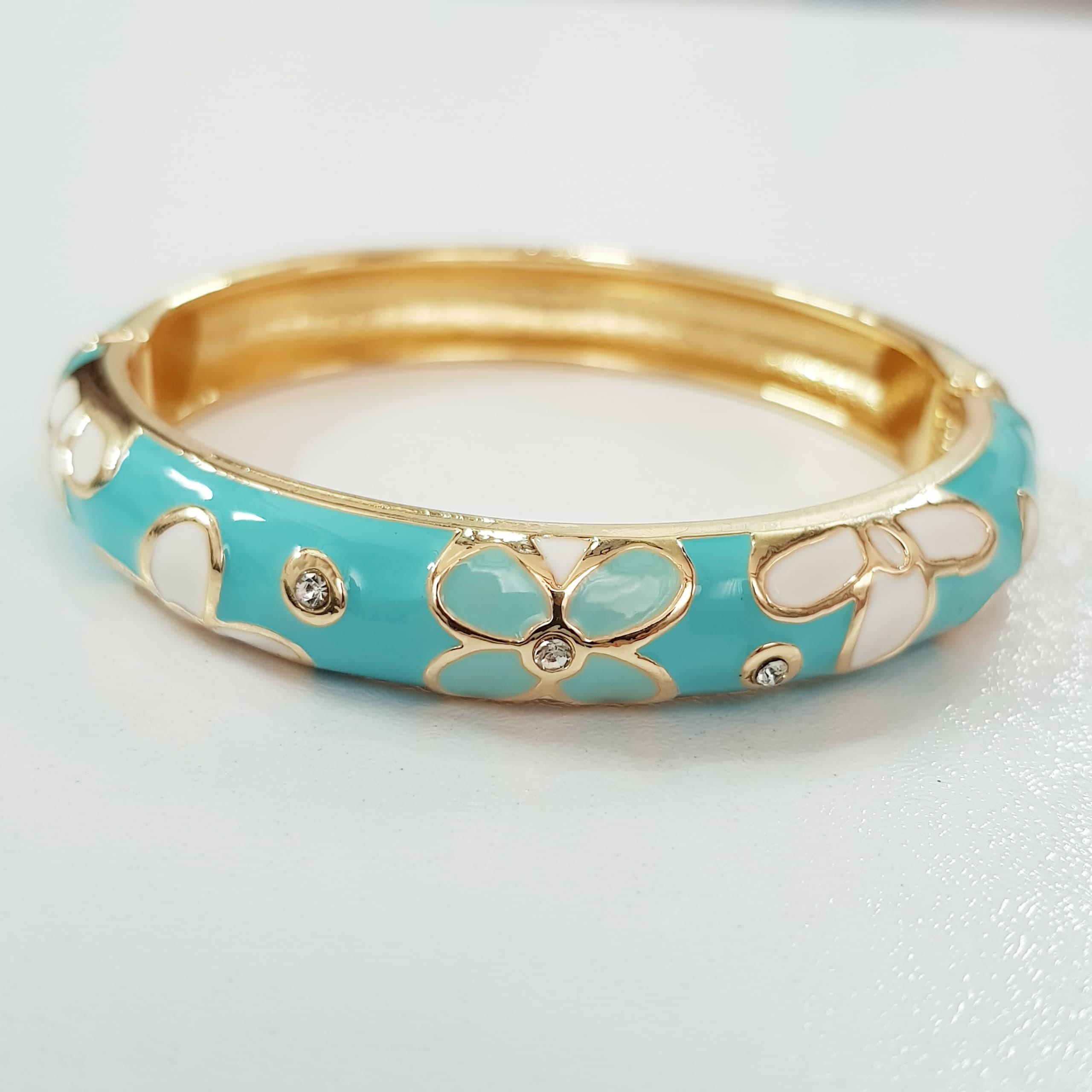 دستبند بنگل طلایی مینا کاری شده نگین دار ، فنری ، کیفیت فوق العاده عالی، فری سایز ضد حساسیت , برند Fashion Jewelry