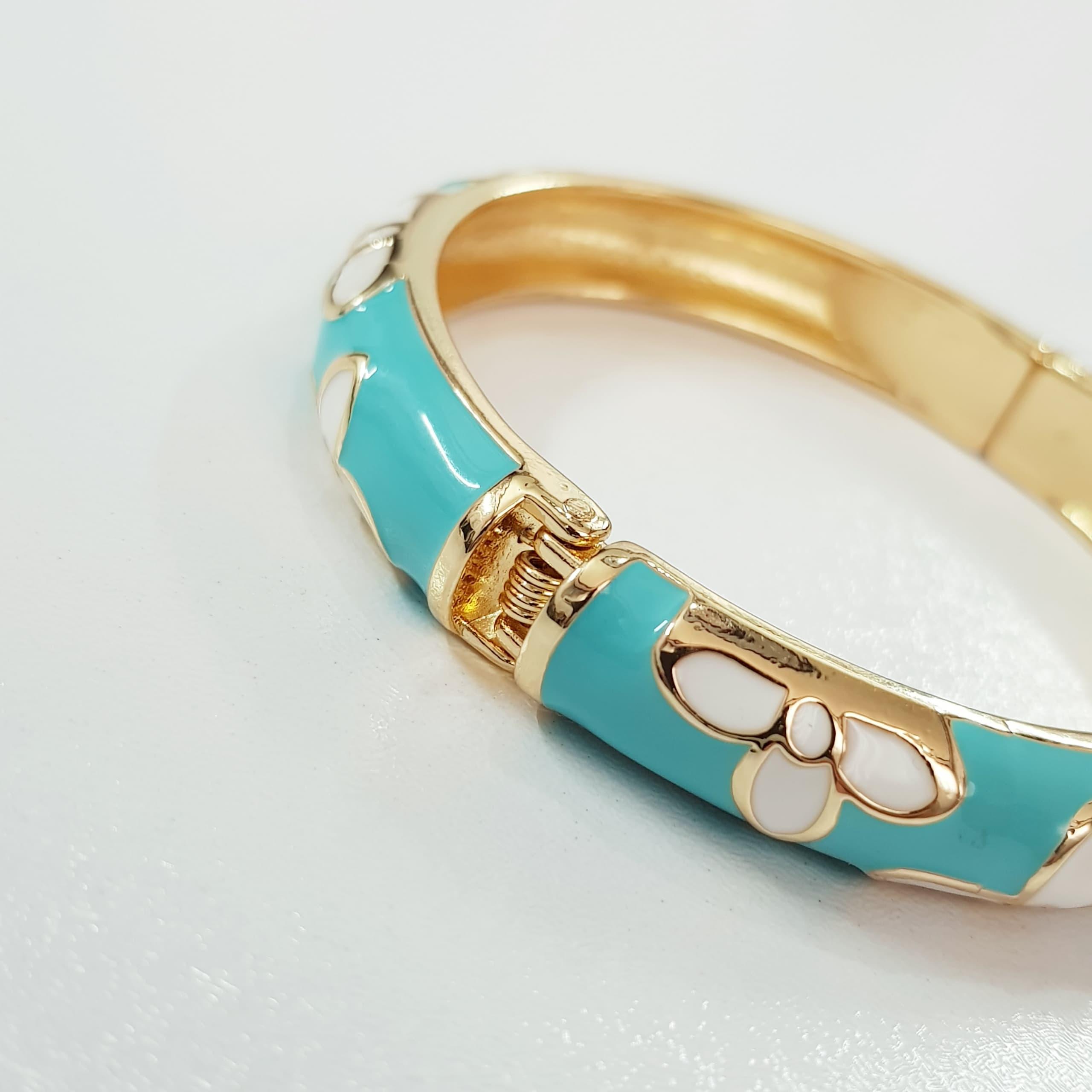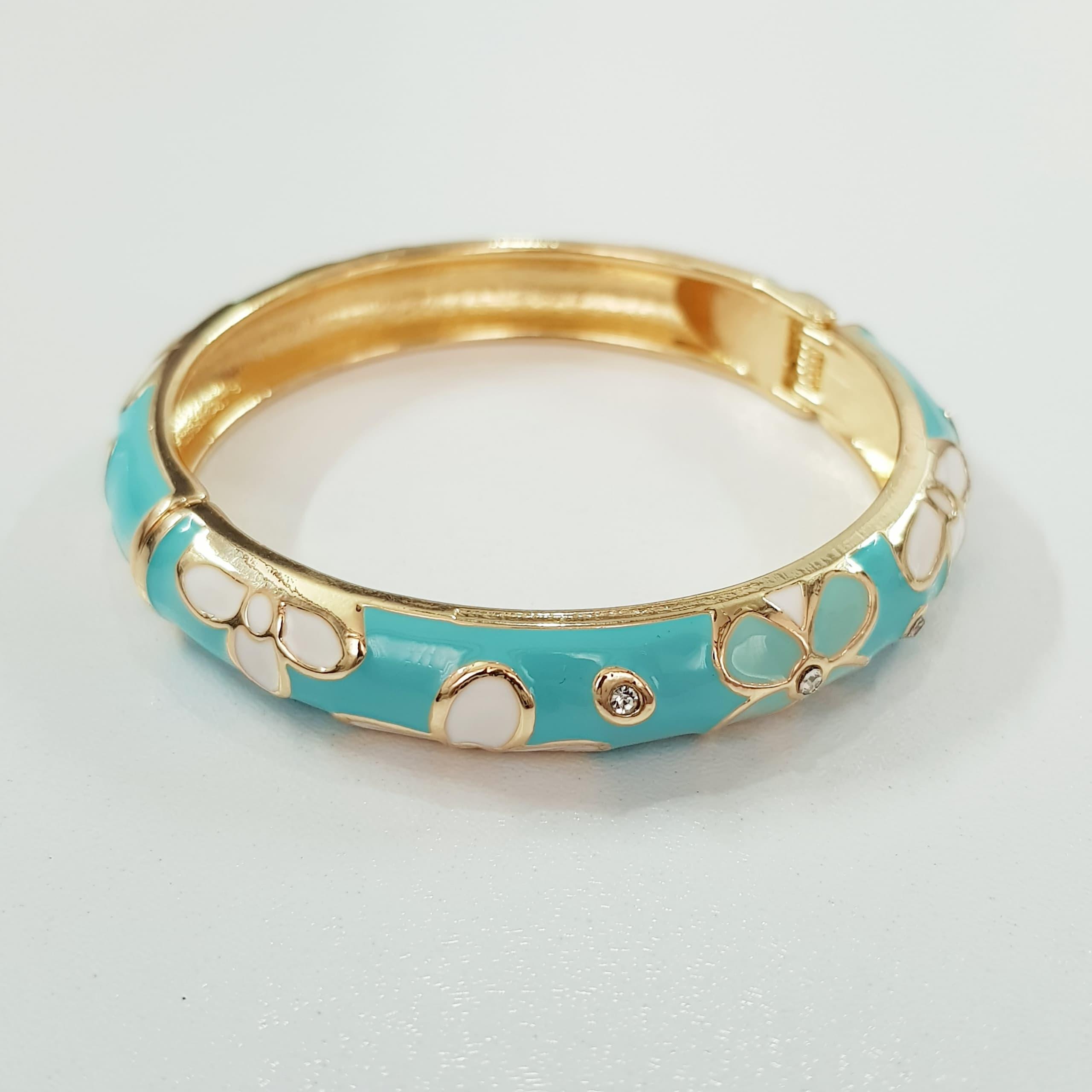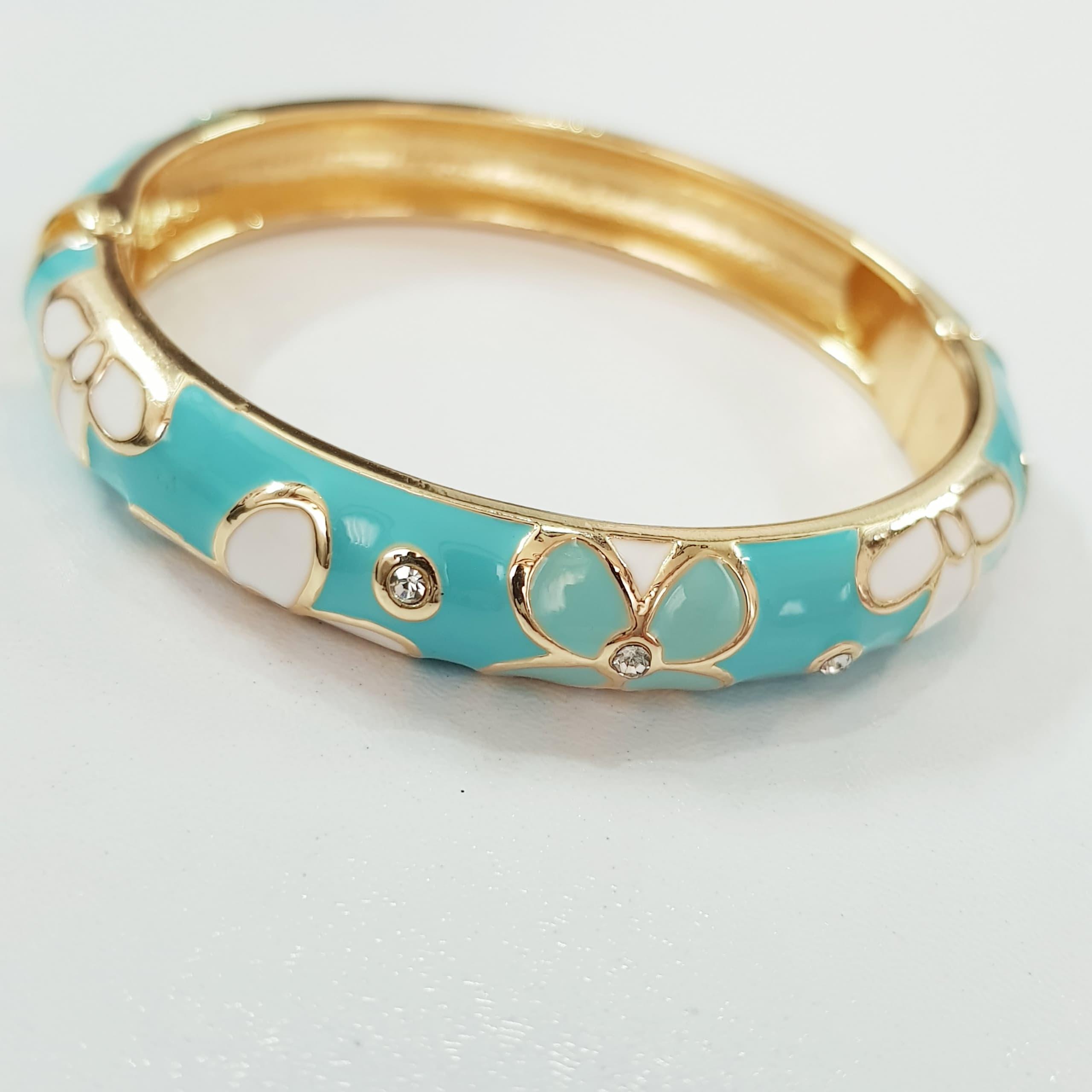 دستبند بنگل طلایی مینا کاری شده نگین دار ، فنری ، کیفیت فوق العاده عالی، فری سایز ضد حساسیت , برند Fashion Jewelry