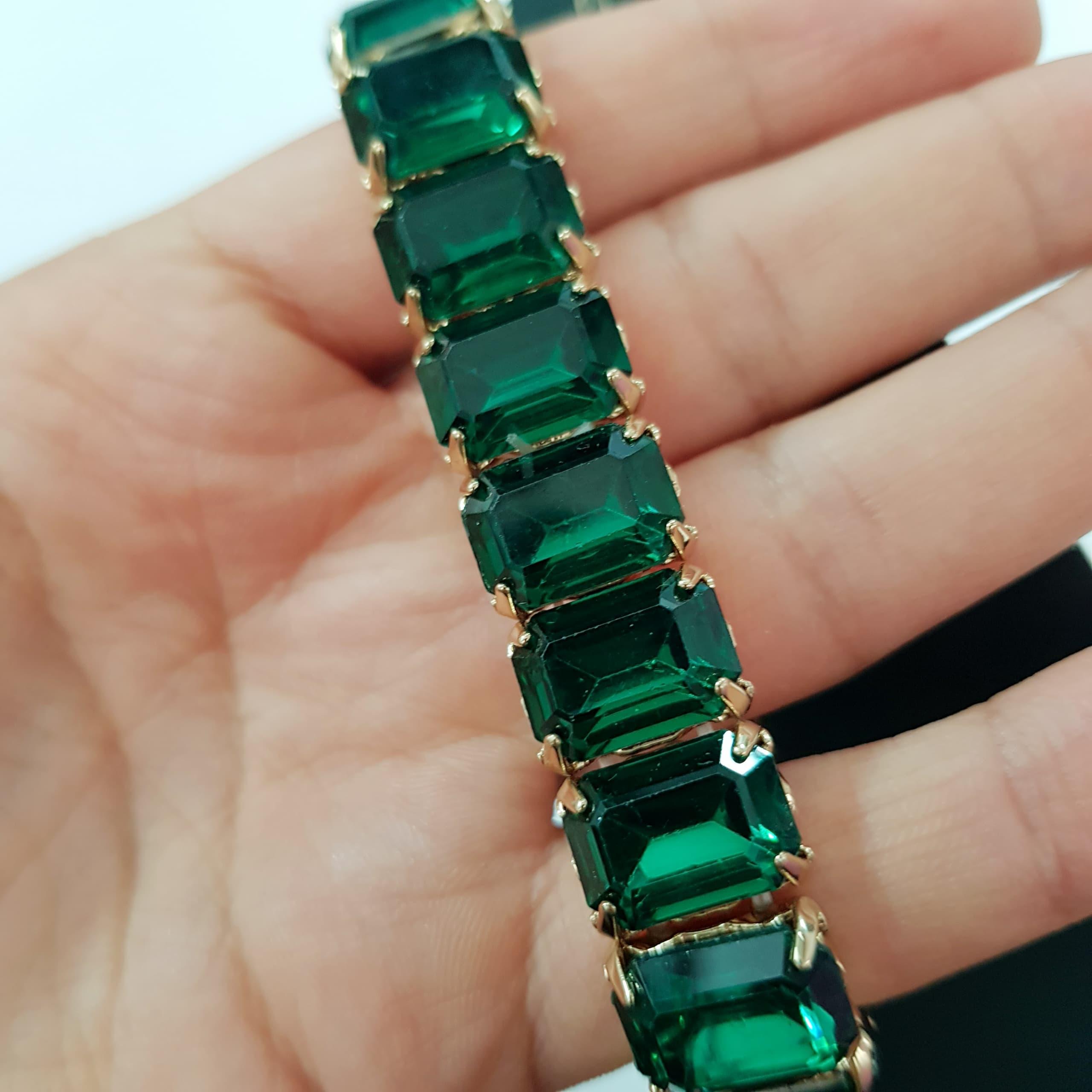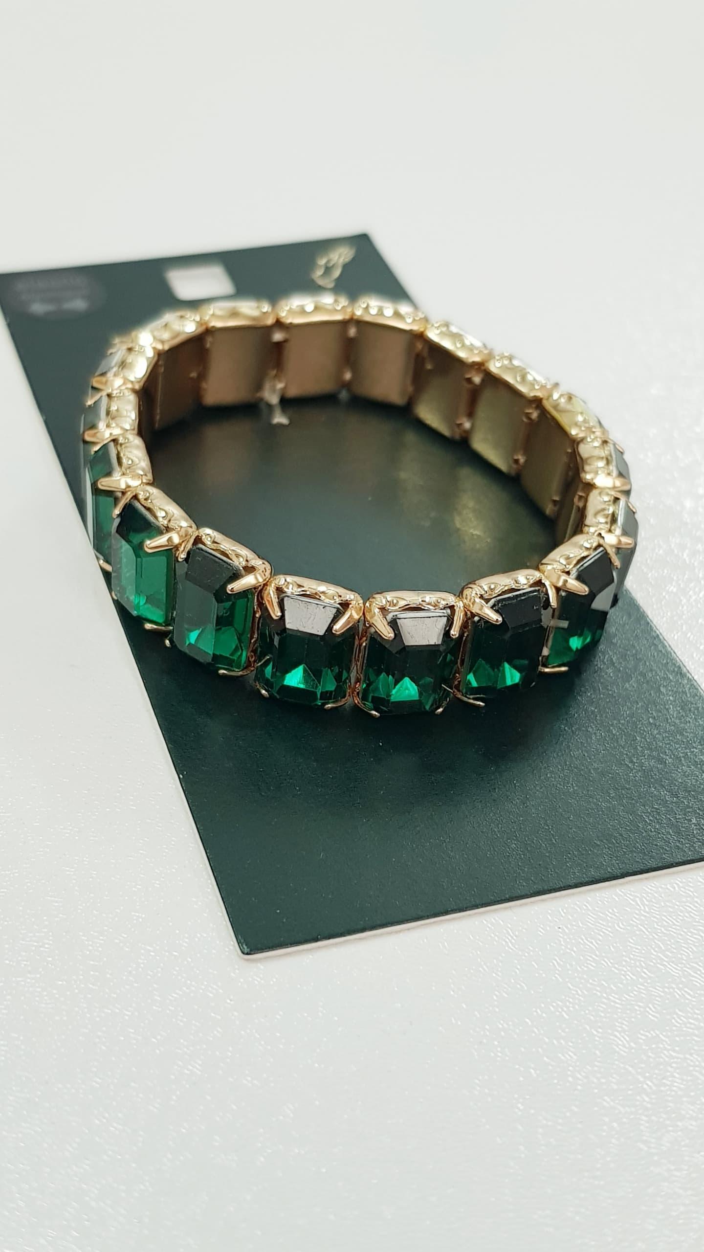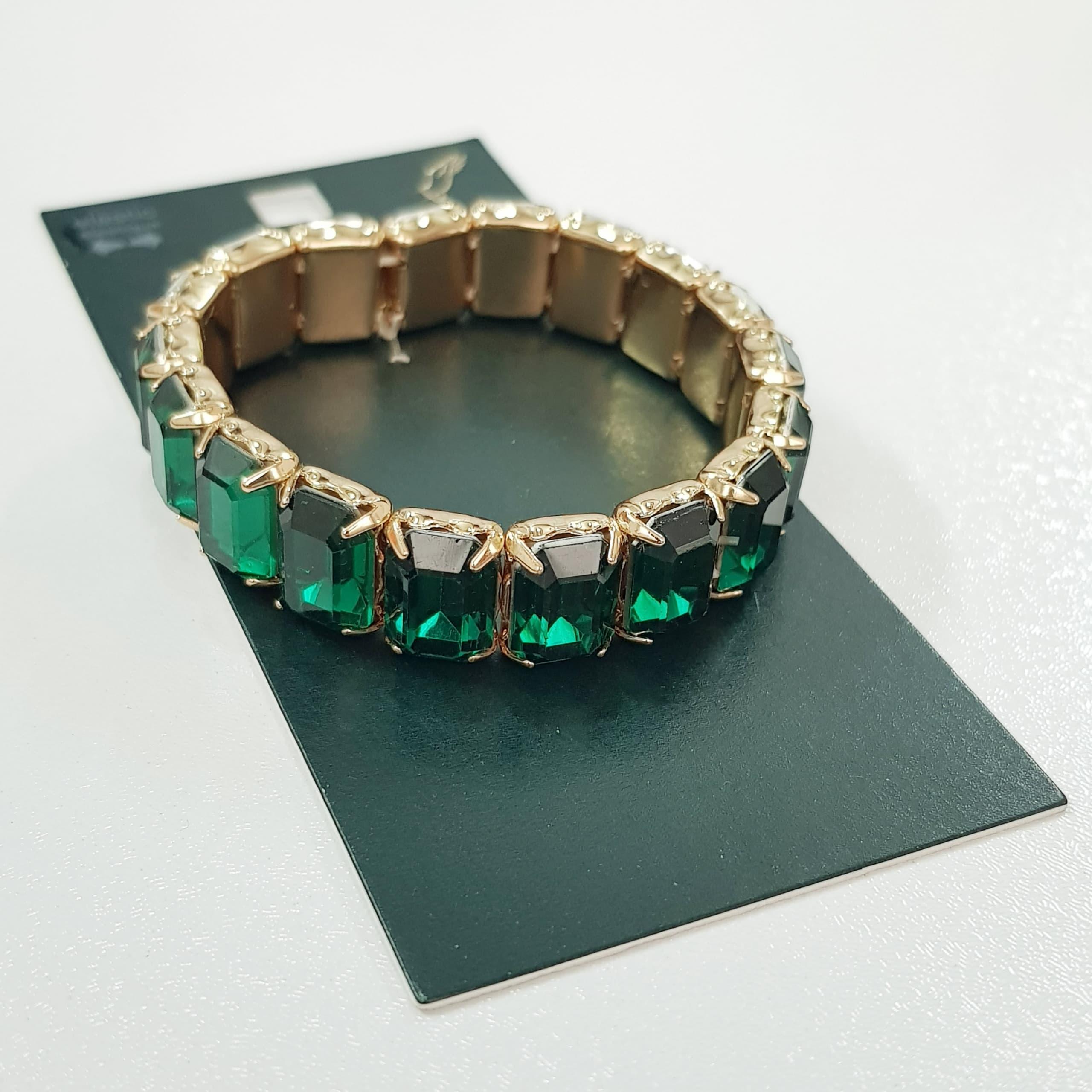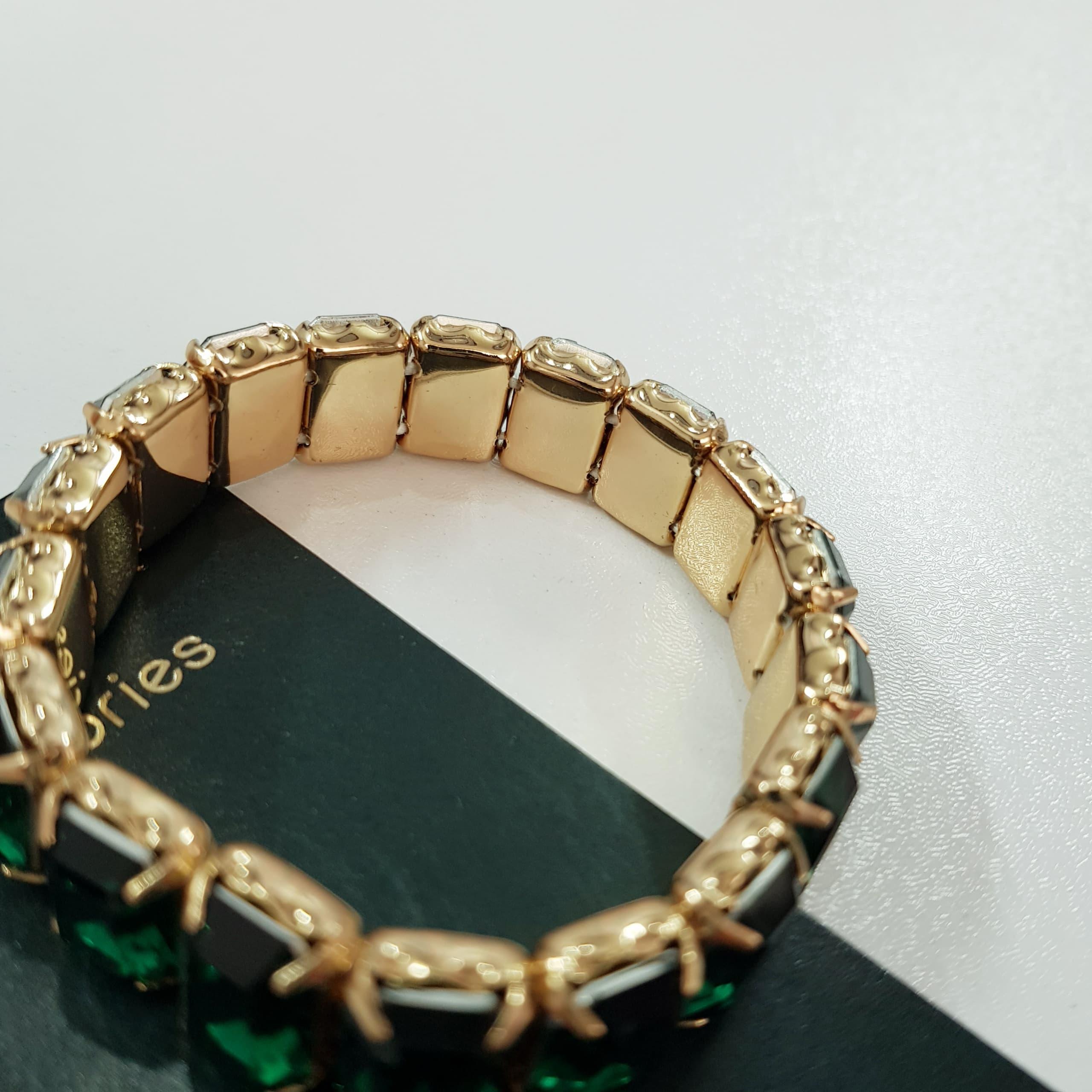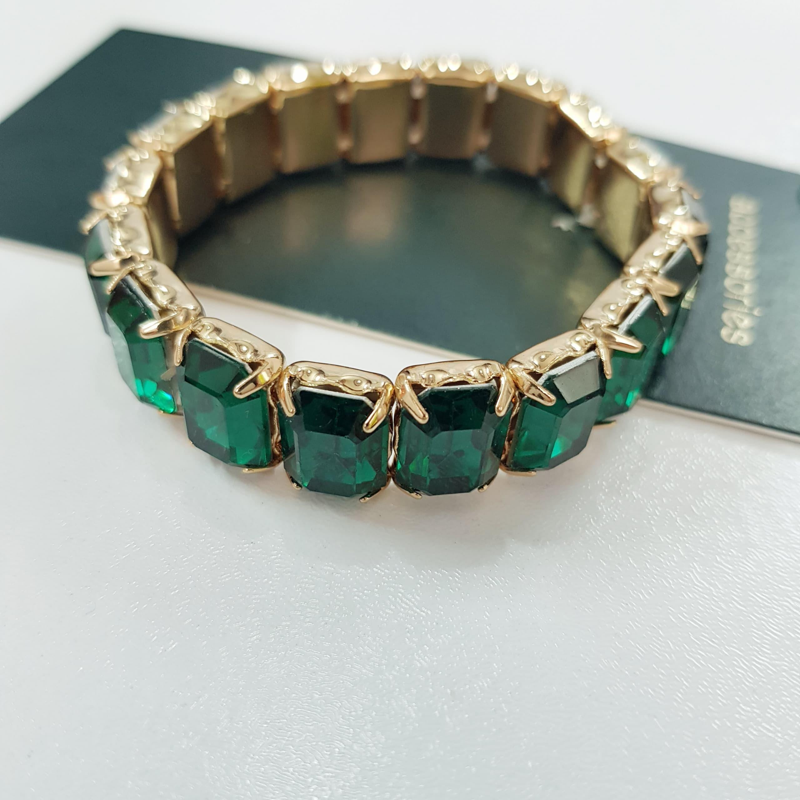 دستبند بنگل کشی طلایی کریستالی سبز رنگ ، کار فوق العاده زیبا و درخشان ، فری سایز ، استفاده راحت ضد حساسیت برند Accessories تحت لیسانس آلمان