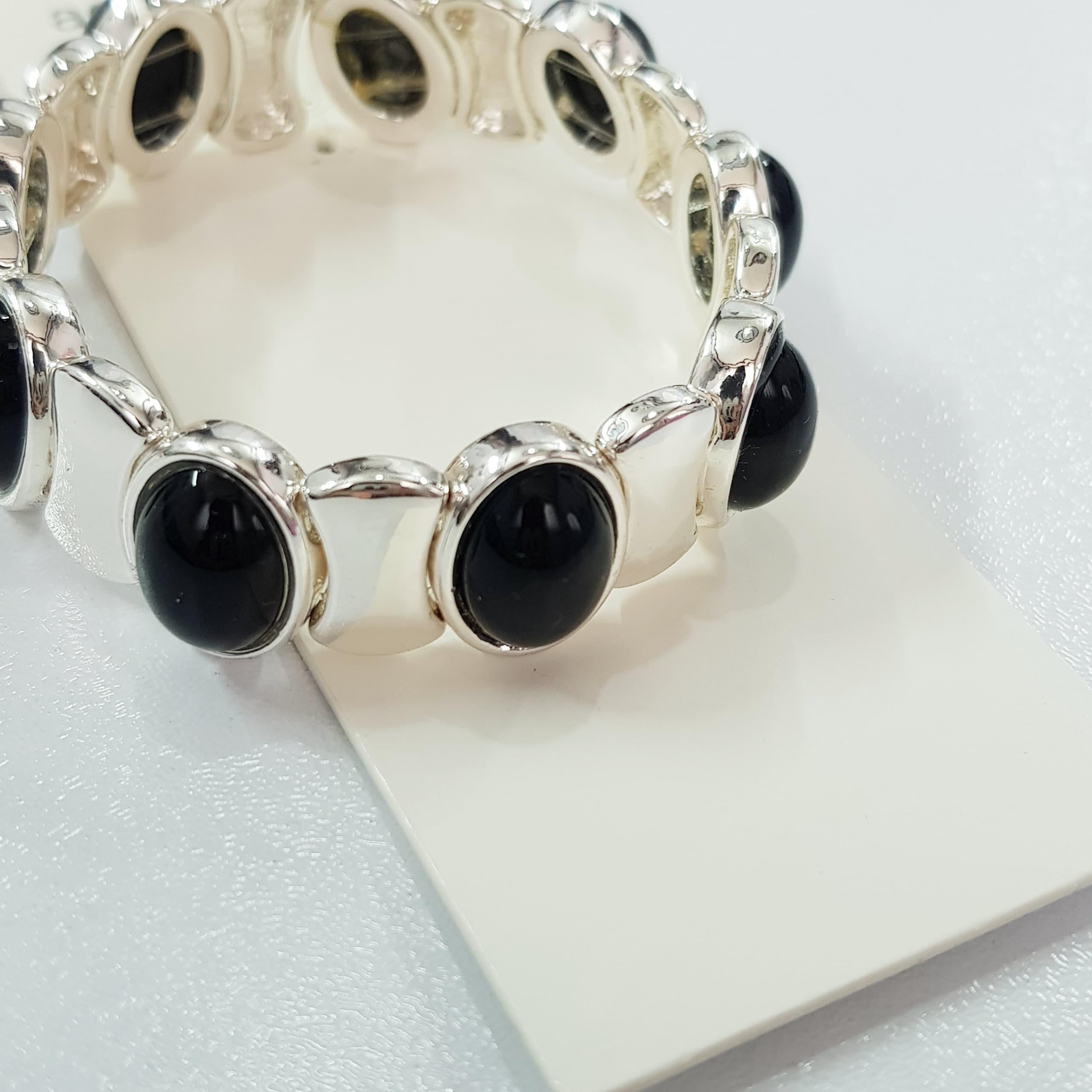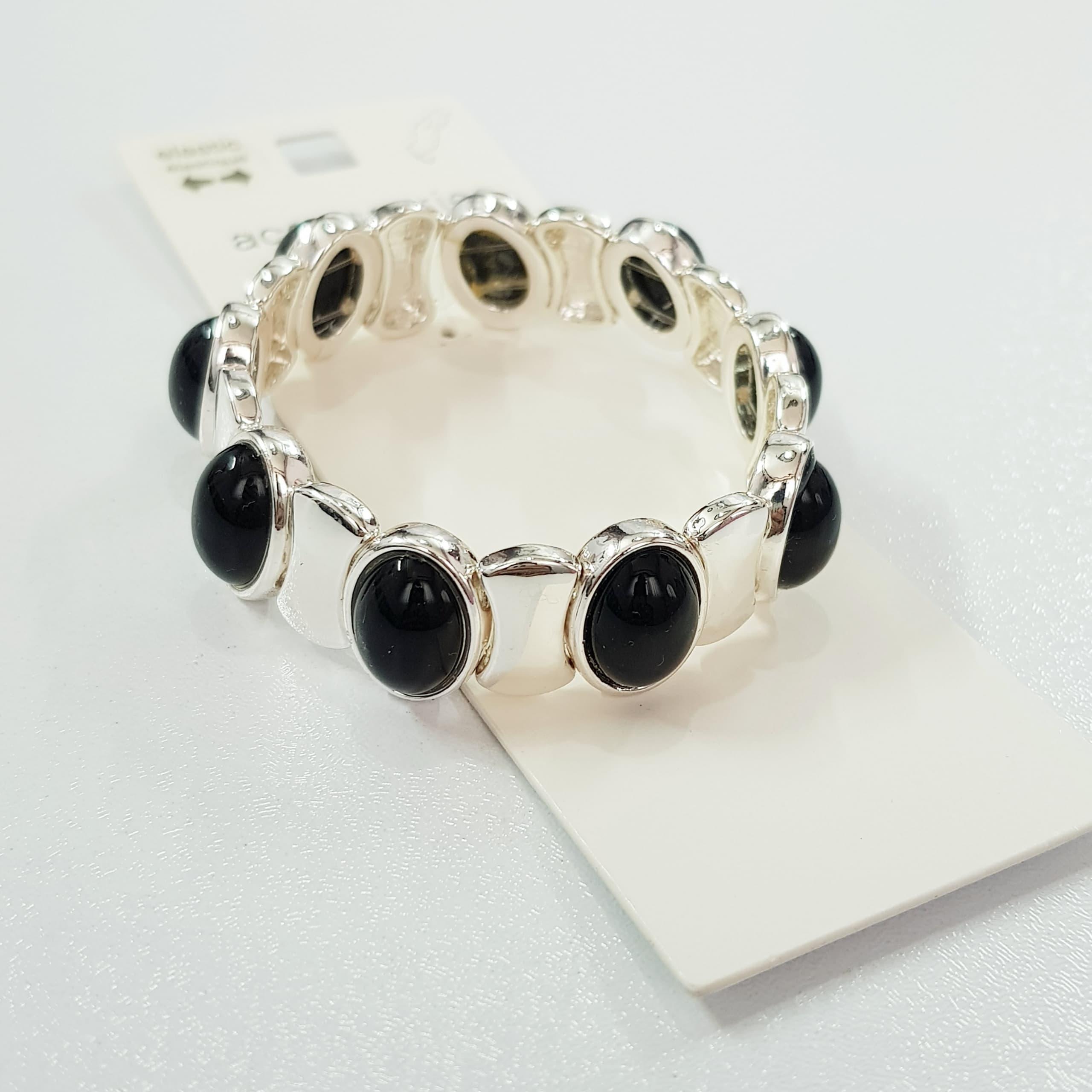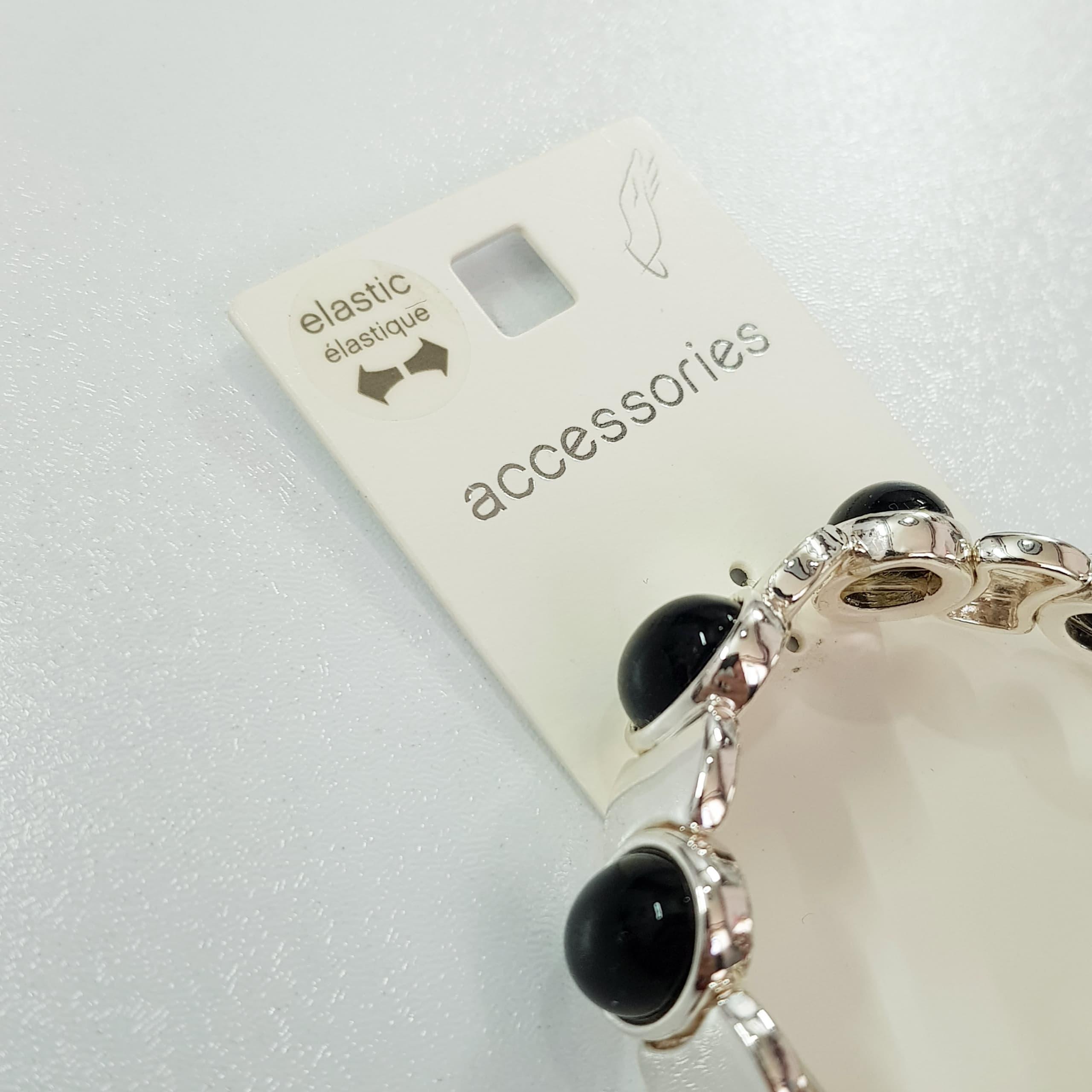 دستبند بنگل کشی نقره ای نگین مشکی ، زیبا و مینیمال ، فری سایز ، استفاده راحت ضد حساسیت برند Accessories تحت لیسانس آلمان