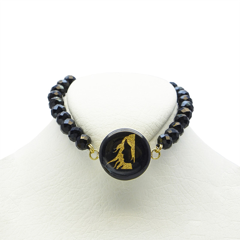 | سایر توضیحات | نماد ماه روکش طلا است که همراه با سنگ انیکس در پلاک دستبند کار شده. |