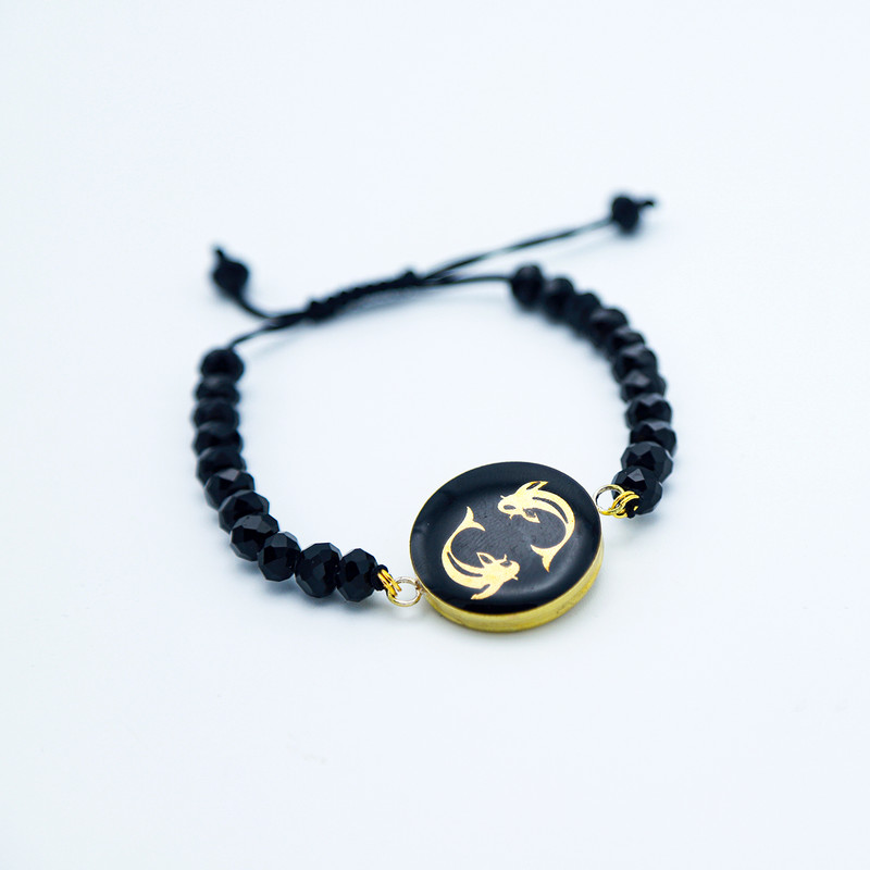این دستبند زیبا و خاص با ترکیب سنگ انیکس و نماد ماه اسفند طراحی شده است که جذابیت، معنا و کیفیت را به طور همزمان در خود جای داده است. سنگ انیکس که به رنگ مشکی براق شناخته میشود در مرکز این دستبند، نماد ماه اسفند با طراحی هنری و ظریف قرار گرفته که با روکش طلا به ضخامت 5 میکرون حکاکی شده است. این روکش طلا جلوهای درخشان و دوام بالا به محصول بخشیده است.