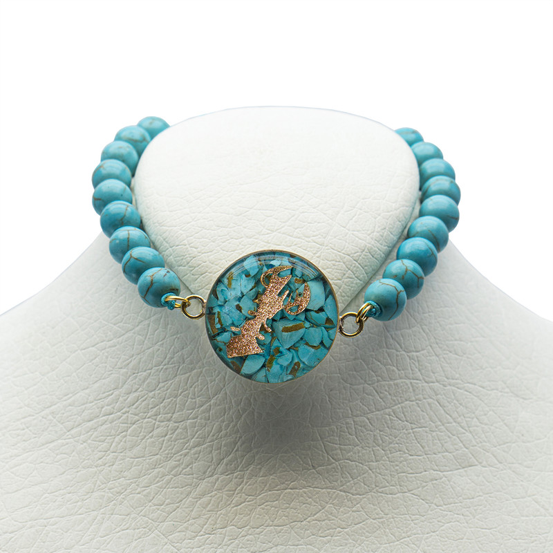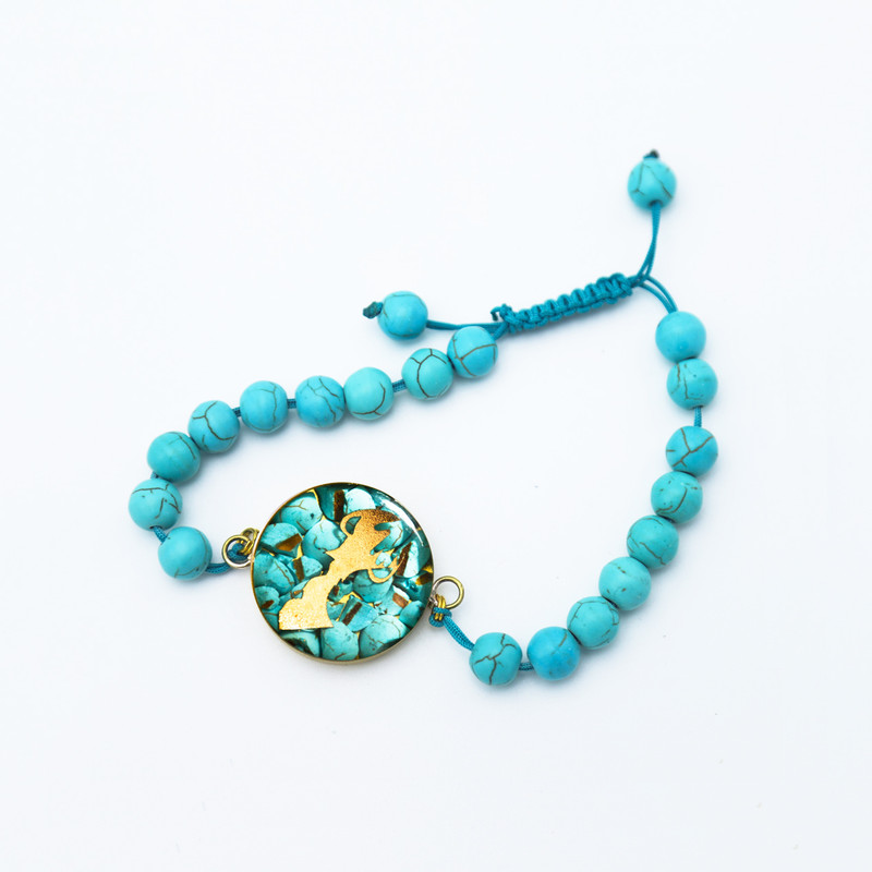 دستبند ماه تولد یکی از زیبا ترین دستبند های دستساز می باشد که در آن با ترکیب دانه های فیروزه و سمبل ماه تولد روکش طلا باکیفیت ، این اثر جذاب تولید شده است. این محصول کاملا دست ساز میتواند هدیه ای با ارزش برای یک دوست و یا همراه باشد . تمام تلاش ماخلق زیبایی های است ماندگار و متفاوت برای کسانی که طالب داشته هایی منحصر به فرد اند . فیروزه سنگ نسبتا حساسی است و نباید با مواد آرایشی، عطر و یا مواد شیمیایی در تماس باشد. چنانه این اتفاق افتاد بهتر است بلافاصله با آب ولرم خوب شستشو داده شود. سمبل بهمن ماه یعنی علامت مشک آب ساخته شده از روکش طلای 24 عیار که درخشندگی خیلی محسور کننده ای به دستبند می بخشند. دستبند مدل ماه تولد با ورق طلای 24 عیار روکش شده و دقت بسیار بالایی در ساختار بدنه و نگین دارد .