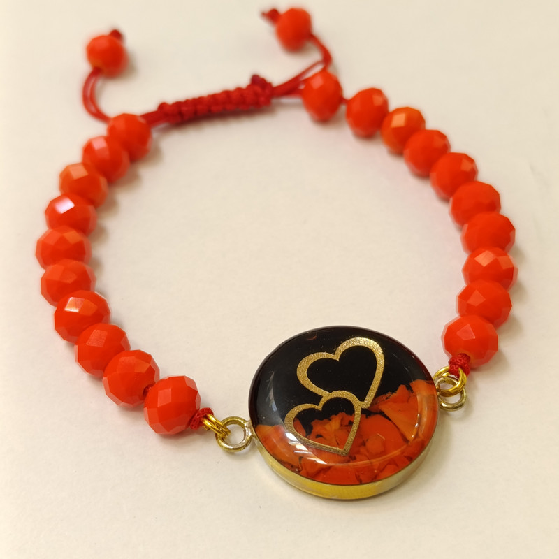 دستبندی با طراحی مینیمال و در عین حال خاص که ترکیبی از دو قلب طلایی و سنگ اونیکس نارنجی را به نمایش می‌گذارد. این دستبند با رنگ گرم و شاداب خود، به استایل شما انرژی و شخصیت می‌بخشد. اجزای فلزی آن ضدحساسیت هستند و در برابر رطوبت و تعریق تغییر رنگ نمی‌دهند. مناسب برای استفاده روزمره یا به عنوان هدیه‌ای خاص و پرمعنا.