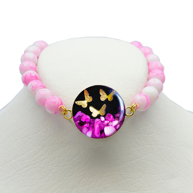 دستبند روکش طلا سه پروانه با طراحی ظریف و الهامگرفته از طبیعت، مکملی زیبا برای گردنبند همین مجموعه است. مهرههای این دستبند از سنگهای طبیعی اونیکس ساخته شدهاند و در سه رنگ سفید، مشکی و صورتی عرضه میشوند تا با سلیقهها و استایلهای مختلف هماهنگی کامل داشته باشند.