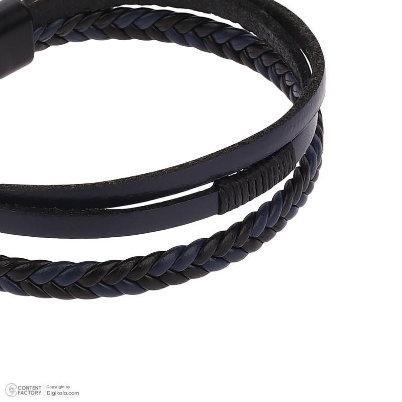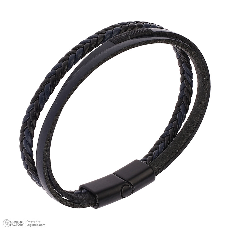 طراحی این محصول شامل دو بخش است: یک بند چرمی ساده و یک بند بافتهشده با رنگ ترکیبی مشکی و سرمهای، که جلوهای چشمنواز و مدرن به آن بخشیده است. قفل آهنربایی فلزی مشکی نه تنها ایمنی استفاده را افزایش میدهد، بلکه به راحتی قابل باز و بسته شدن است و زیبایی بصری خاصی دارد.
