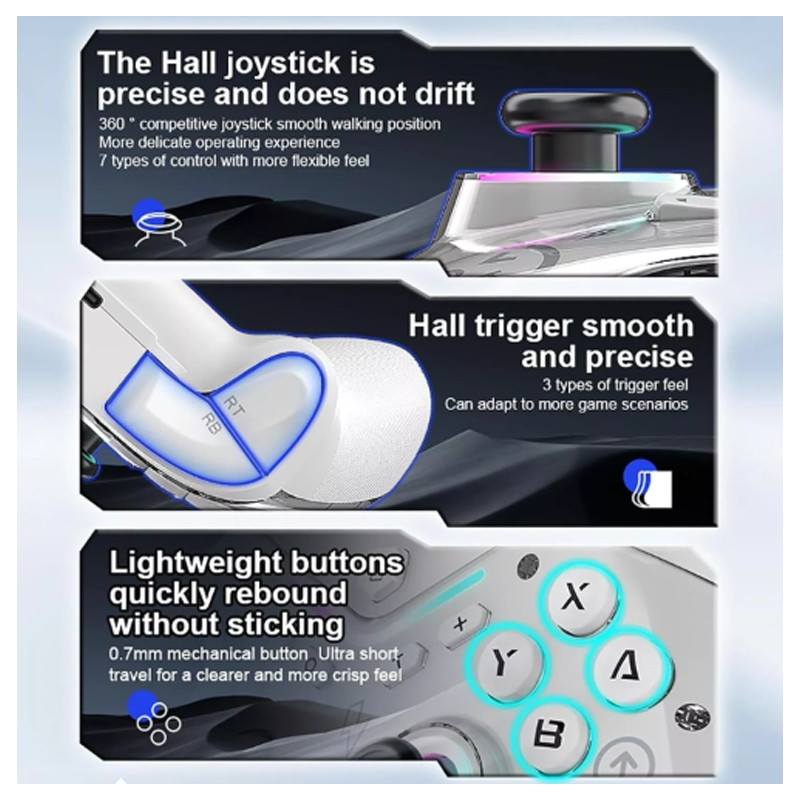 گیم پد مدل CM-619 با طراحی خاص و ظاهری زیبا برای استفاده در انواع گوشی موبایل ، تبلت و لپ تاپ و Steam طراحی و ساخته شده است. این کنترلر حرفه ای دارای باتری داخلی بوده و و از طریق کابل شارژ Type-C که داخل بسته بندی قرار گرفته شارژ می شوند. این دسته درای 2 موتور شوک و باتری با ظرفیت 600 میلی آمپر از نوع پلیمری می باشد.