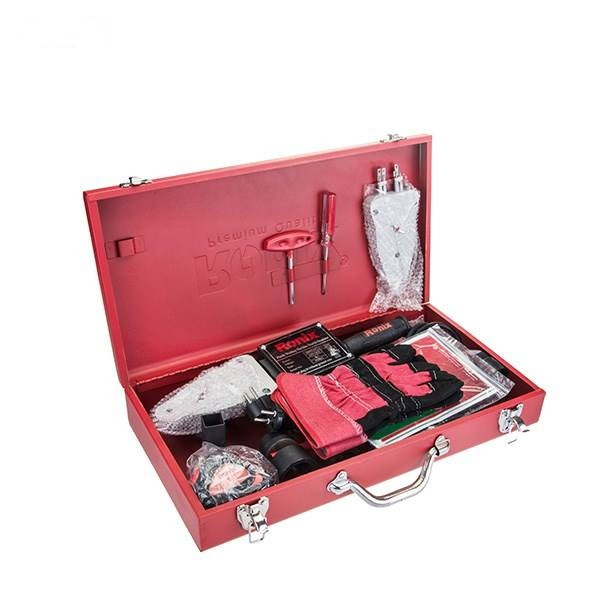 | اقلام همراه | -یک عدد راکت اضافه - دستکش کار - سیم سیار به طول 3 متر - متر 5 متری - قیچی پی وی سی بر بزرگ - آچار - کیف فلزی |