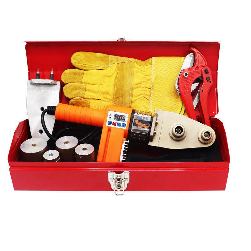 | اقلام همراه | 1 عدد راکت یدکی مجموعه 6 عدد لقمه اتو به سایز: 2 عدد: 20 . 2 عدد: 25 . 1 عدد: 32 و 1 عدد: 40 میلی متر می باشد 1 جفت دستکش کف دوبل بسیار مستحکم و با کیفیت 1 عدد قیچی لوله برش تا سایز 42 میلی متر 1 عدد پایه هویه صفحه ای فلزی بسیار مستحکم 1 عدد الن برای باز و بست دستگاه اتو 1 عدد جعبه فلزی دستگیره دار |