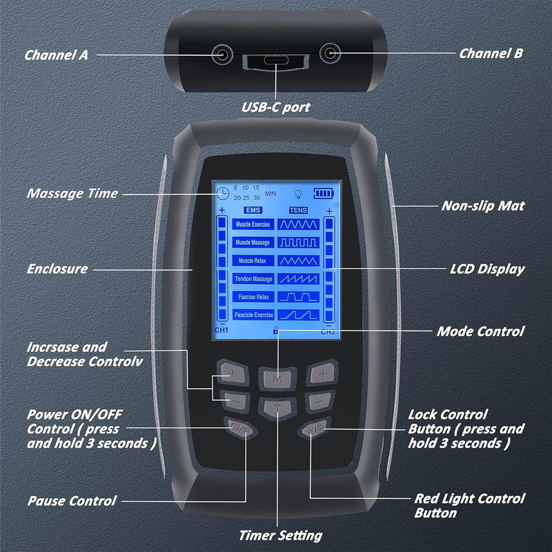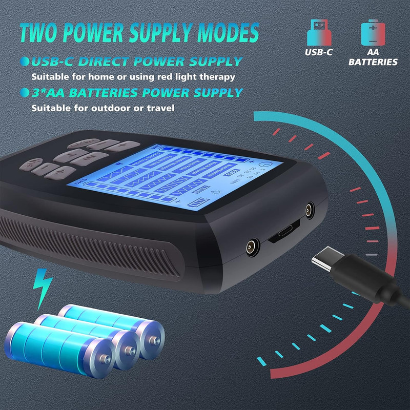 | سایر توضیحات | دستگاه تحریک عضلات TENS، دستگاه TENS EMS دو کاناله با قدرت بالا برای تسکین درد گردن، PMS، کمر و عضلات، ماساژور پالس الکترونیکی با 6 پد الکترود و کیف مسافرتی دستگاه TENS تسکیندهنده درد حرفهای: ماساژور الکتریکی TENS به تسکین درد عضلات و مفاصل ناشی از ورزش، فشار بیش از حد یا کارهای روزمره خانه کمک میکند. طراحی ساده پنل دستگاه TENS EMS به شما امکان میدهد حالت مورد نظر خود را به طور شهودیتر انتخاب کنید. همه حالتها کنترل دقیقی را برای تسکین درد و تسکین سفتی عضلات ارائه میدهند. با ماساژور پالسی الکتروتراپی TENS و لوازم جانبی آن، بدن خود را آرام کنید و در هر زمان درد را مدیریت کنید. دستگاههای TENS دو کاناله مستقل A/B: میتوانید شدتهای جداگانهای را برای کانال A و کانال B برای تسکین درد تنظیم کنید. آرامش کامل بدن: برای گردن، شانهها، پشت، کمر، بازوها و پاها استفاده کنید و این را به قدرتمندترین ابزار برای آرامش بدن خود تبدیل کنید. در هر زمان و هر مکان با خانواده و دوستان خود لذت ببرید. (توجه: لطفاً قبل از تغییر حالت، شدت را روی 0 تنظیم کنید تا از تحریک شدید جلوگیری شود) چند منظوره و حرفه ای: دستگاه TENS دارای دو روش تامین برق است، یکی منبع تغذیه مستقیم TYPE-C، و دیگری روش تامین برق، قرار دادن باتری های 3AA است که به شما امکان می دهد در سناریوهای مختلف بهتر عمل کنید. دستگاه TENS EMS مجهز به نور درمانی قرمز است، می توانید ناحیه دردناک را با نور قرمز از پشت روشن کنید تا درد تسکین یابد. عملکرد قفل می تواند از لمس تصادفی کلیدهای دیگر در حین استفاده و ایجاد آسیب جلوگیری کند. ارائه درمانی مفید برای تسکین درد. |