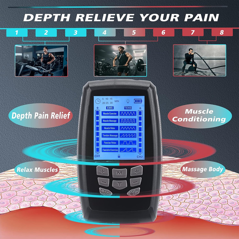 | کاربرد | تحریک عضلات TENS، دستگاه TENS EMS دو کاناله با قدرت بالا برای تسکین درد گردن، PMS، کمر و عضلات، ماساژور پالس الکترونیکی |