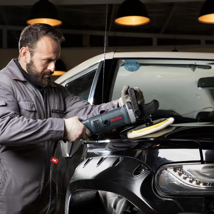 پس از تعمیر و رنگ سطوح فلزی، برای بهتر جلوه دادن این سطوح و براق کردن آنها از دستگاهی به نام پولیش استفاده میکنند. شرکت «رونیکس» (Ronix) یک مدل از این دستگاه را با نام 6110 تولید کرده است. این دستگاه با قدرت 1200 وات تولید میشود. این محصول دارای صفحهای از جنس آلومینیوم و با قطر 180 میلیمتر است. سرعت گردش این صفحه در حالت آزاد تا 3000 دور بر دقیقه میرسد. ویژگی این مدل در کنترل و تنظیم سرعت دستگاه است؛ یعنی علاوه بر مجهز بودن دستگاه به دیمر (کنترل سرعت با فشار بر روی کلید دستگاه)، قابلیت تنظیم سرعت در 6 حالت مختلف را دارد.