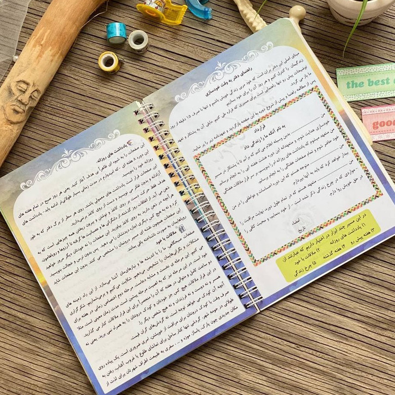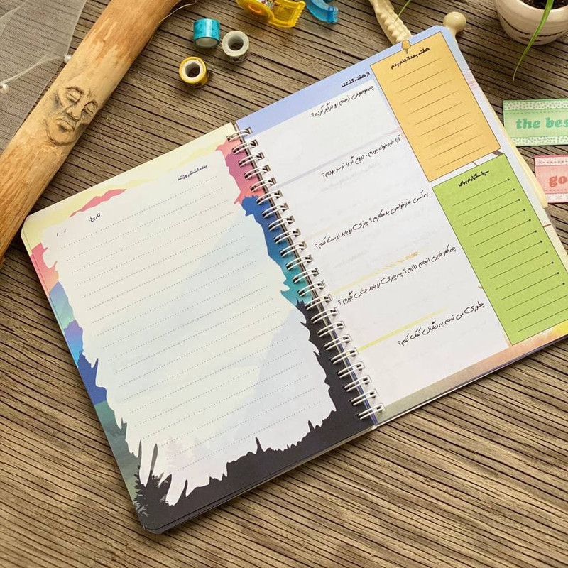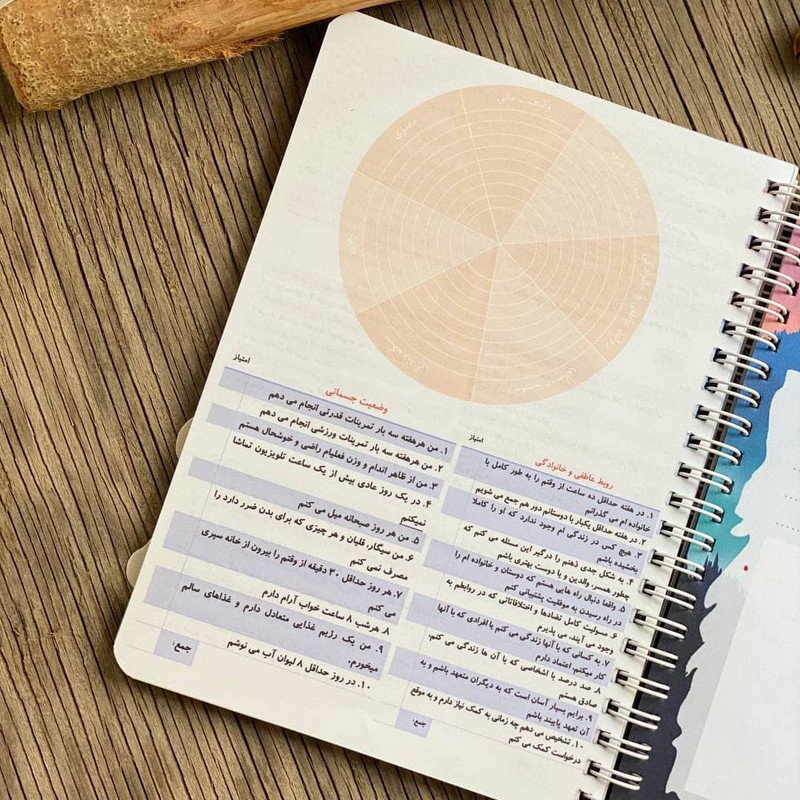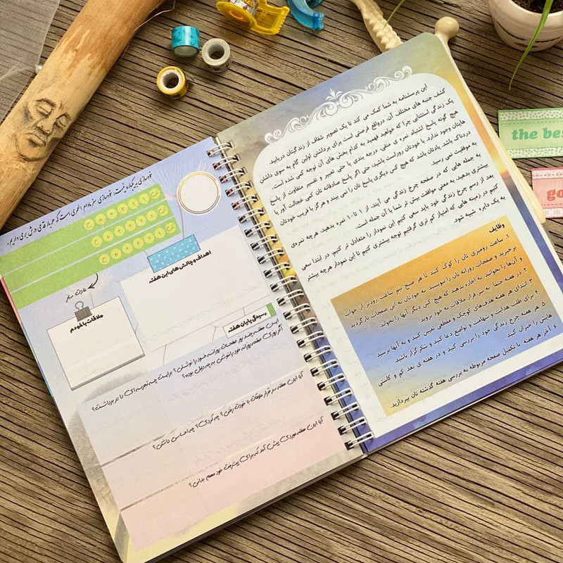 در ابتدای دفتر راهنمای کاملی برای چگونگی استفاده دفتر داریم که داخل راهنما شرح کامل بخش های مختلف دفتر و وظایف روزانه و هفتگی شما کامل ذکر شده است.