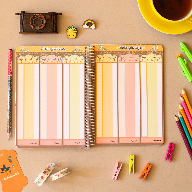 همچنین در ابتدای دفتر، صفحاتی برای مدیریت مالی و برنامهریزی ماهانه قرار داده شده است. این صفحات به شما این امکان را میدهند که هزینهها و بودجههای ماهانه خود را به صورت دقیقتر مدیریت کنید. بخش برنامهریزی ماهانه نیز به شما دید کلی از ماه پیشرو ارائه میدهد و کمک میکند تا کارهایتان را با برنامهریزی استراتژیکتری پیش ببرید.