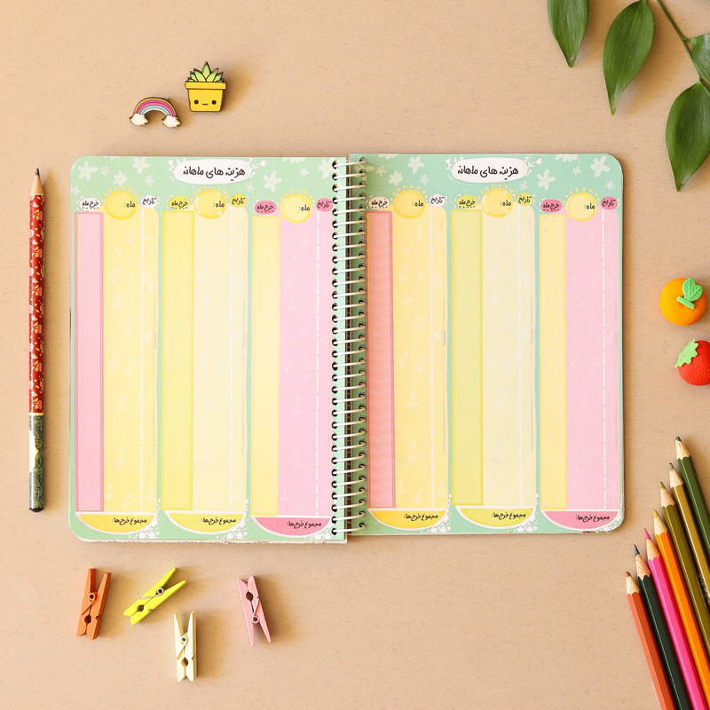 همچنین در ابتدای دفتر، صفحاتی برای مدیریت مالی و برنامهریزی ماهانه قرار داده شده است. این صفحات به شما این امکان را میدهند که هزینهها و بودجههای ماهانه خود را به صورت دقیقتر مدیریت کنید. بخش برنامهریزی ماهانه نیز به شما دید کلی از ماه پیشرو ارائه میدهد و کمک میکند تا کارهایتان را با برنامهریزی استراتژیکتری پیش ببرید.