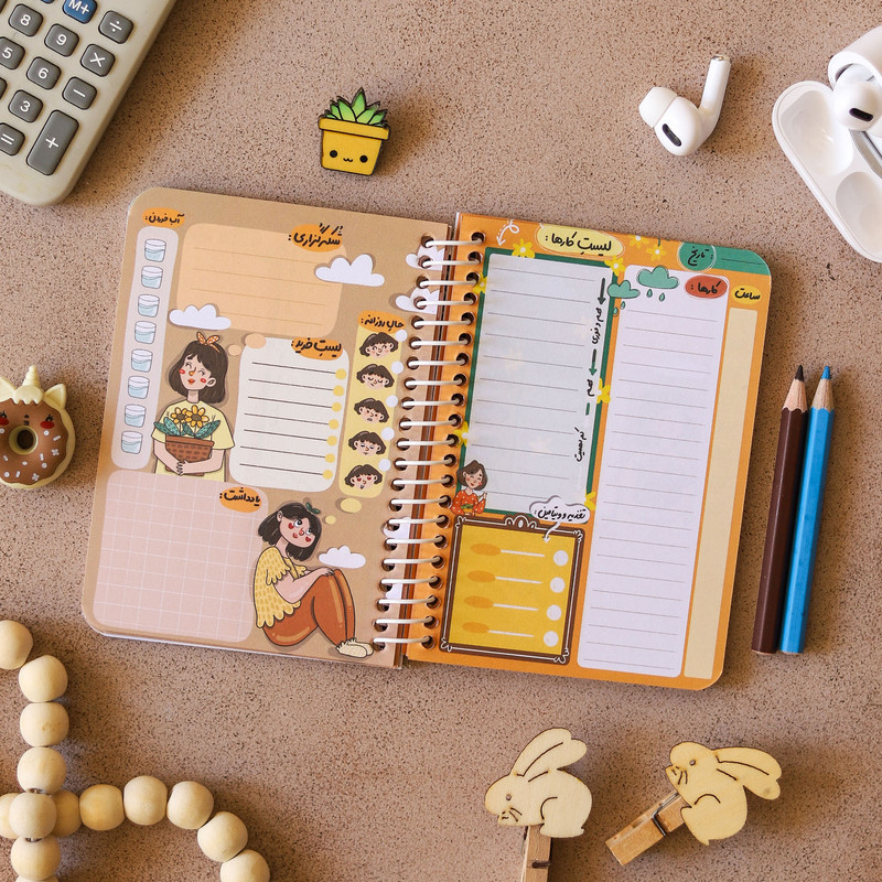 یکی از بزرگترین مزیتهای این دفتر، سایز A6 آن است که آن را به یک همراه همیشگی و جابهجا شونده تبدیل کرده است که به راحتی در کیف یا کولهپشتی شما جای میگیرد. بنابراین، میتوانید در هر زمانی و هر مکانی به برنامهریزی و یادداشت برداری بپردازید.