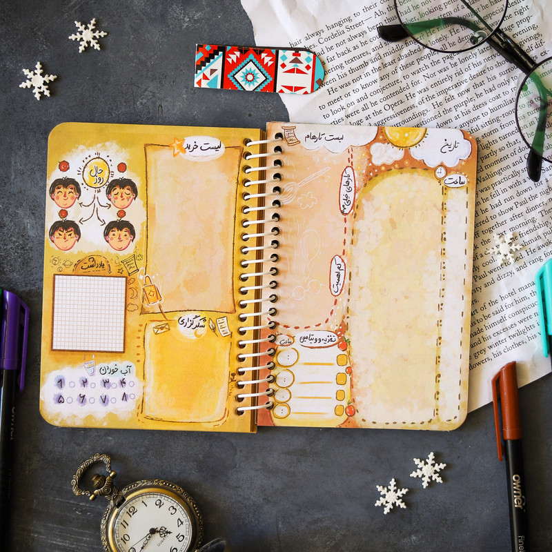 یکی از بزرگترین مزیتهای این دفتر، سایز A6 آن است که آن را به یک همراه همیشگی و جابهجا شونده تبدیل کرده است که به راحتی در کیف یا کولهپشتی شما جای میگیرد. بنابراین، میتوانید در هر زمانی و هر مکانی به برنامهریزی و یادداشت برداری بپردازید.
