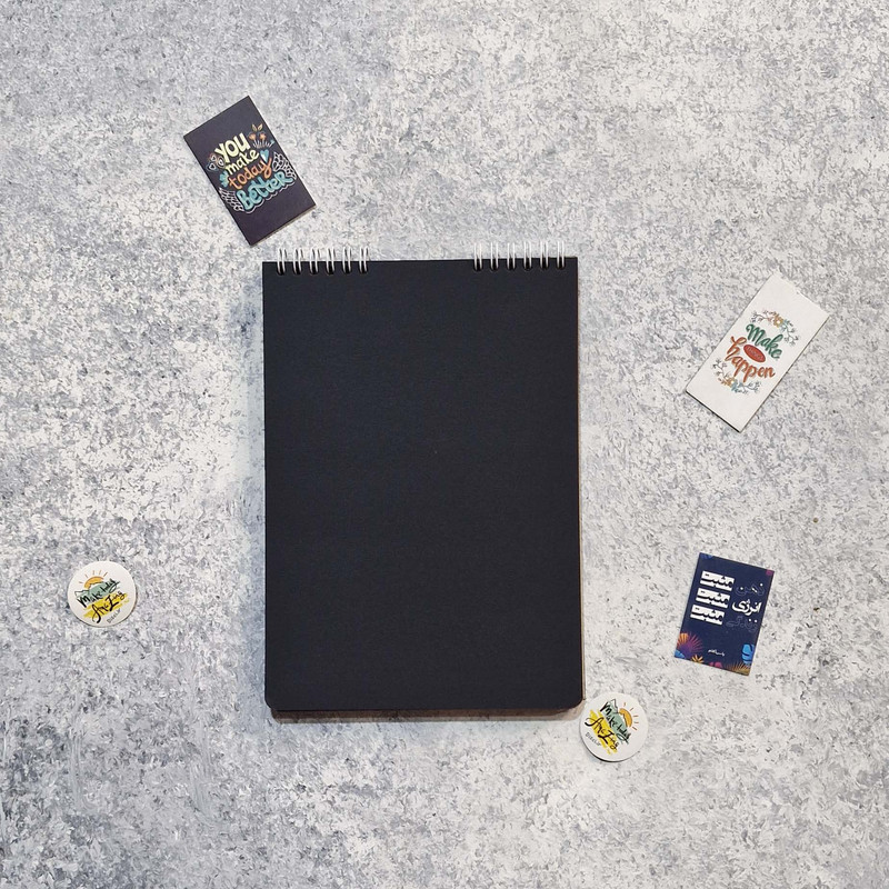 این دفتر سیاهبرگ با ۲۵ برگ در سایز ۲۴ در ۱۶ سانتیمتر و کاغذ مشکی ۲۴۰ گرمی، یک ابزار خاص و حرفهای برای هنرمندان و خلاقان است. کاغذ ضخیم و باکیفیت آن، فضایی ایدهآل برای تکنیکهایی مانند نقاشی با گچ، مداد سفید، رنگهای متالیک یا حتی خطاطی فراهم میکند. سایز بزرگ دفتر به شما امکان خلق آثار هنری با جزییات بیشتر را میدهد، در حالی که کاغذ مشکی آن جلوهای چشمنواز و منحصر به فرد به کارهایتان میبخشد. چه برای پروژههای هنری، طراحیهای خلاقانه یا تمرین تکنیکهای مختلف، این دفتر سیاهبرگ همراهی ایدهآل برای به چالش کشیدن خلاقیت شماست.