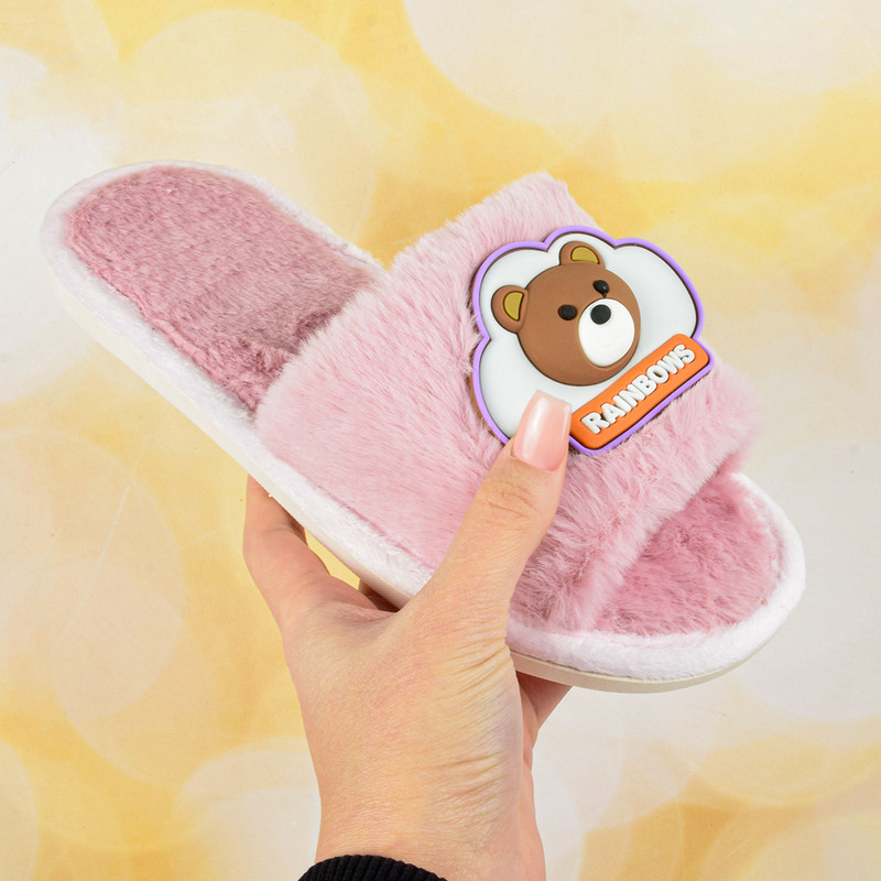 دمپایی حولهای پاپا مدل تدی رنگینکمانی