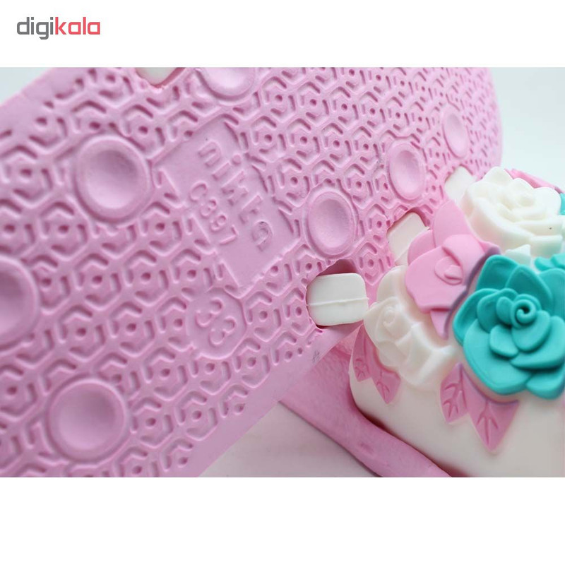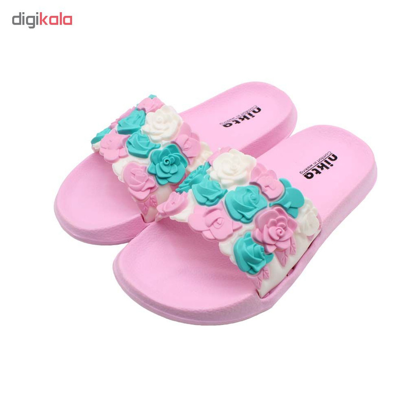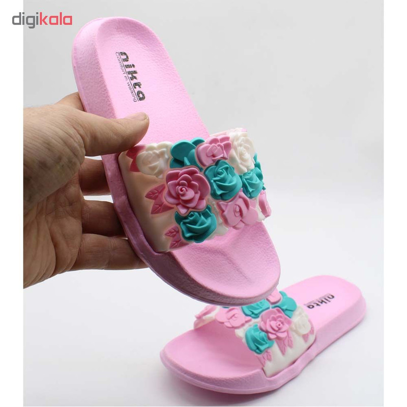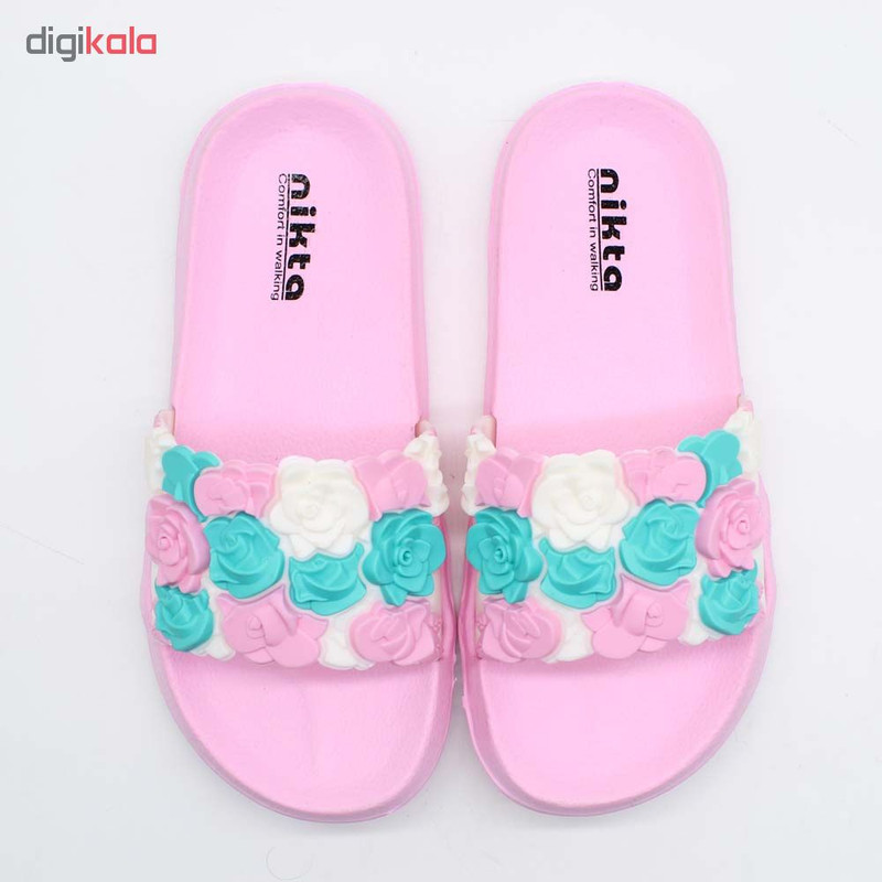 دمپایی دخترانه نیکتا طرح سه گل مدل K1-397-497-PK توسط برند خوشنام نیکتا طراحی و تولید شده است. این دمپایی دارای زیره از جنس EVA است لذا بسیار نرم و راحت میباشد. این دمپایی برای محیط های داخلی مانند روفرشی یا سرویس بهداشتی و حمام مناسب بوده همچنین در محیط های بیرونی نیز میتوان آن را استفاده نمود.