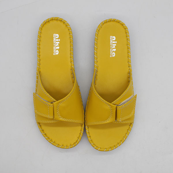این صندل شیک و زیبا که بسیار نرم و راحت نیز میباشد توسط برند خوشنام ایرانی نیکتا طراحی و تولید شده است. زیره این صندل زنانه از جنس PU طبی ژله ای است لذا داری کفی بسیار نرم و راحت مبیاشد و پیشنهاد میشود اگر میخواهید راحتی بی نظیری را تجریه نمایید سراغ مدل دیگری نروید. رویه این صندل روفرشی زنانه از جنس چرم مصنوعی درجه یک است که برای راحتی و محافظت پوست پا و جلوگیری از تعرق دارای آستر داخلی بسیار لطیف میباشد. ضخامت زیره در قسمت پاشنه در حدود 3.5 سانتیمتر است.