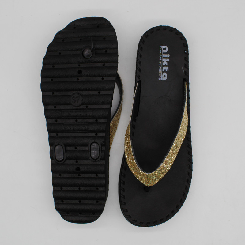 این دمپایی لاانگشتی زنانه توسط برند خوشنام ایرانی نیکتا طراحی و تولید شده است. زیره این دمپایی لاانگشتی زنانه از جنس PVC نرم (ایربولینگ) بوده که علاوه بر داشتن کفی و نرم و راحت در مقابل سایش بسیار مقاوم است همچنین زیره ضخیم دمپایی باعث نمایش بلندتری از قد و قامت شما خواهد شد. رویه این دمپایی روفرشی با اکلیل تزئین شده است.
