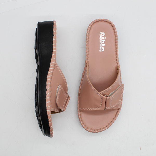 این صندل شیک و زیبا که بسیار نرم و راحت نیز میباشد توسط برند خوشنام ایرانی نیکتا طراحی و تولید شده است. زیره این صندل زنانه از جنس PU طبی ژله ای است لذا داری کفی بسیار نرم و راحت مبیاشد و پیشنهاد میشود اگر میخواهید راحتی بی نظیری را تجریه نمایید سراغ مدل دیگری نروید. رویه این صندل روفرشی زنانه از جنس چرم مصنوعی درجه یک است که برای راحتی و محافظت پوست پا و جلوگیری از تعرق دارای آستر داخلی بسیار لطیف میباشد. ضخامت زیره در قسمت پاشنه در حدود 3.5 سانتیمتر است.