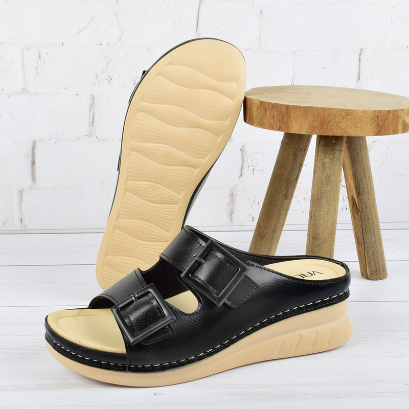 این دمپایی زنانه یکی از جدیدترین محصولات برند والمو میباشد که طراحی جدید و به روز آن همراه با راحتی بالا ، این کالا را به انتخابی مناسب در میان دمپایی های زنانه تبدیل کرده است. زیره این محصول از مواد مقاوم پلی اورتان ساخته شده که در عین سبکی از استحکام فوق العاده ای برخوردار است. کفی این محصول نیز از طراحی کاملا طبی مطابق با ارگونومی پا ساخته شده که همین امر موجب شده تا این محصول در استفاده های طولانی مدت هیچگونه آسیبی به پا و کمر شما وارد ننماید. رویه این کالا نیز از بهترین نوع مواد چرم صنعتی تهیه شده است که باعث شده تا علاوه بر زیبایی از مقاومت بالایی برخوردار باشد. دوخت تمیز باعث شده تا زیبایی این محصول دو چندان بشود.