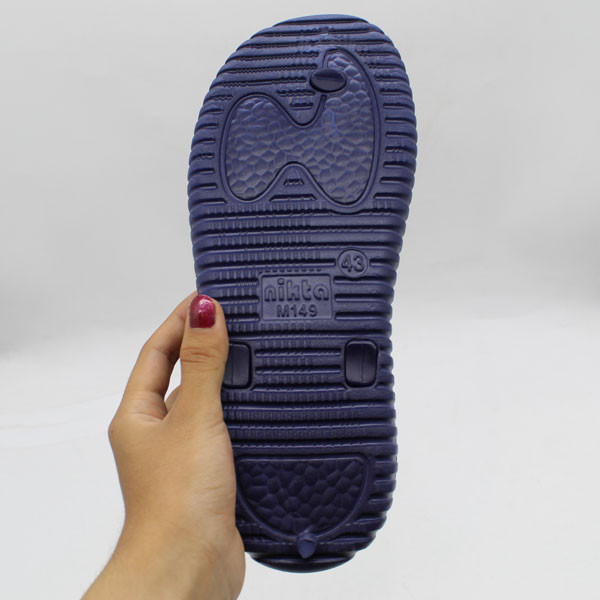 دمپایی لاانگشتی مردانه نیکتا مدل 149 کد 1166-DBE-GY دارای زیره ای جنس EVA و رویه ای از جنس PVC نرم و منعطف است.
