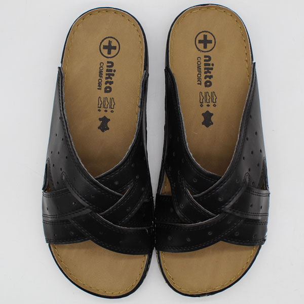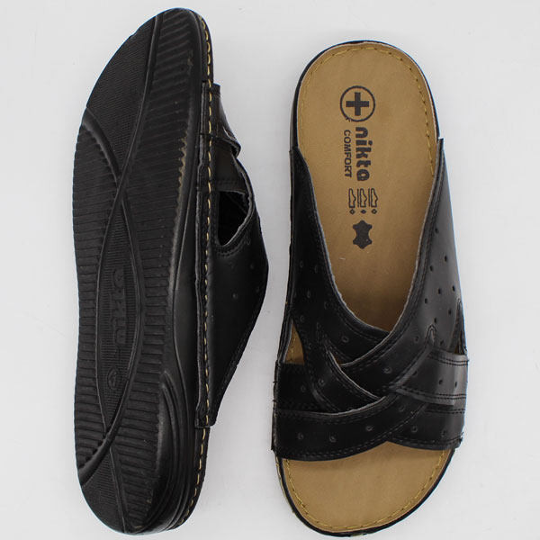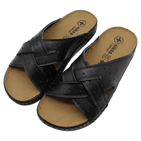 دمپایی طبی مردانه نیکتا مدل 5010-3 کد 1138-BK دارای زیره ای طبی از جنس PU و رویه ای از چرم مصنوعی درجه یک است. چرم مصنوعی استفاده شده در رویه این دمپایی طبی دارای آستر لطیف داخلی است که باعث راحتی بیشتر پوست پا میشود. زیره این محصول در عین حال که طبی است، مقاومت سایشی بالایی دارد و به همین دلایل این محصول گزینه بسیار مناسبی برای استفاده در محیط های داخلی به عنوان دمپایی روفرشی و همچنین استفاده روزمره در محیط های بیرونی میباشد.