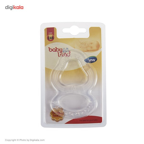 محصولی که میبینیم دندانگیر برند «بیبیلند» مدل (246) است. دندان در آوردن نوزاد میتواند برای او آزاردهنده و همراه با بیقراری باشد و از طرفی باعث گریههای بیامان او شود. این زمان بهترین زمان برای استفاده از دندانگیر است. این مدل از دندانگیر برند «بیبیلند» از لحاظ ظاهری بیرنگ شفاف بوده و طوری طراحی شده که به واسطه دو فضای خالی در قسمت میانی دندانگیر، به راحتی در دست قرار میگیرد. محصول فوق فاقد مایع خنککننده لثه بوده و به دلیل وجود برجستگیهایی که بر روی بدنه آن طراحی شده، کمک زیادی به تسکین درد نوزاد میکند. این محصول بیرنگ بوده و برای نوزاد دختر و پسر مناسب است. این محصول از کیفیت خوبی برخوردار بوده و فاقد مواد مضر شیمیایی است.