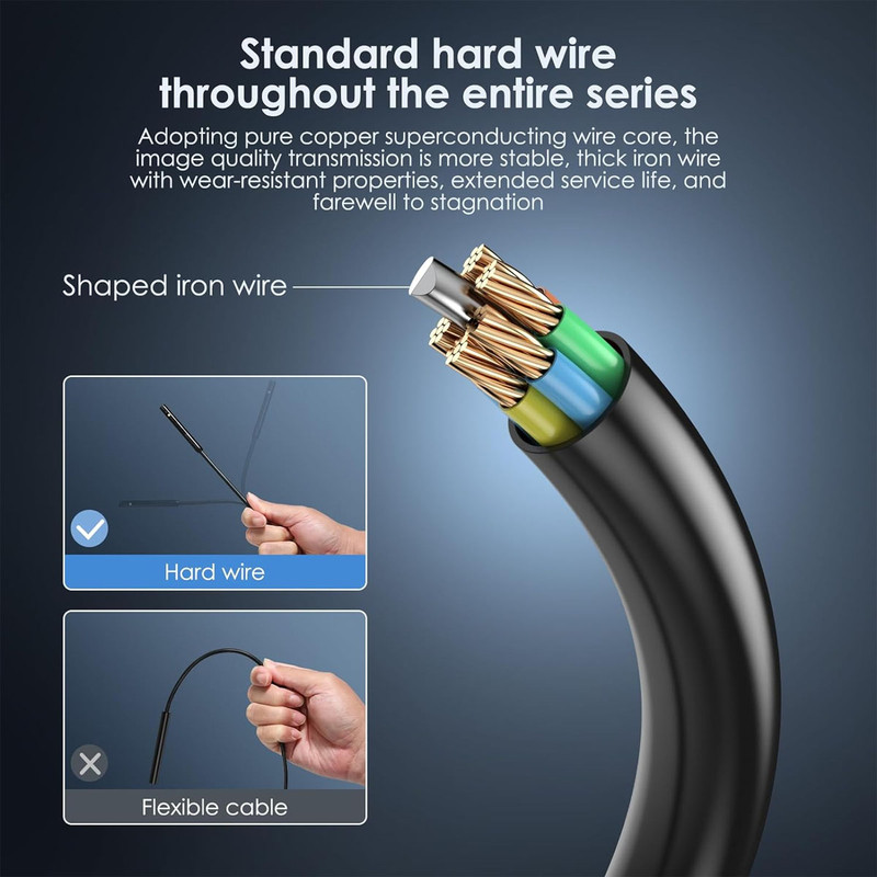 دوربین آندوسکوپی مدل ضدآب10Meters New با کابل 10 متر سخت انعطاف پذیر فنری با کانکتور میکرو USB و Type-C و USB کامپیوتر شما با این نمونه می توانید به تلفن های همراه و یا تبلت ها متصل شده و از آن در موارد متعددی استفاده نمایید. با نصب نرم افزار در دستگاه تلفن همراه و یا تبلت اندروییدی خود و یا نصب نرم افزار ویژه بر روی کامپیوتر خود و اتصال دوربین شلنگی می توانید با وضوح بالا تصاویر را دریافت کنید. این وسیله کاربردهای بسیاری دارد ازجمله کاربردهای آن جستجو و نجات،مشاهده داخل خط لوله، بازرسی موتور، نظارت تصویری، بازرسی لوله فاضلاب ،بازرسی دیوار، و غیره