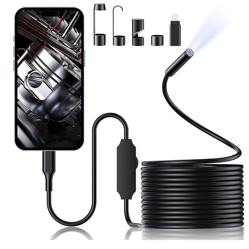 دوربین آندوسکوپی مدل فوکوس خودکار کد 10M 5MP HD NEW با کابل 10 متری 5مگاپیکسل از جدیدترین نمونه دوربین های آندوسکوپی موجود در دنیا با قدرت تصویر برداری HD و دوربین اتو فوکوس می باشد. در سال 2023 شرکت Inskam اقدام به ارائه انواع جدیدی از دوربین های شلنگی که دارای قابلیتهای ویژه ای هستند نمود. از جمله انواع دوربین های باکیفیت بالای 5 مگاپیکسل و قطرهای متفاوت دوربین با قابلیت منحصر بفرد اتوفوکوس و پروپ دوربین دارای استاندارد IP67 و کاملاً ضد آب که باعث می شود تا کاربران بتوانند در شرایط محیطی متفاوت از این دوربین های شلنگی اتوفوکوس نهایت استفاده را ببرند. این دوربین می تواند با استفاده از نرم افزار Ins kam تصویر را با کیفیت بالا در گوشی های هوشمند نمایش داده و امکاناتی همچون گردش تصویر بصورت 360 درجه ، امکان نمایش همزمان یک تصویر گرفته شده و مقایسه آن با تصویر زنده دوربین ، زوم تصویر و همچنین امکان تهیه عکس و فیلم در حین تصویربرداری از محل های دلخواه را در اختیار کاربر قرارداده و همزمان با آن در کارت حافظه ذخیره سازی نماید. یکی از موارد منحصر بفرد این دوربین قابلیت پرتاب نور تا 2 متر در شرایط کاملا تاریک و بدون نور است که با استفاده از 4 LED ویژه پرنور میسر می شود و می تواند در کاوشهای باستان شناسی و اکتشافات معدنی کاربرد موثری داشته باشد. این سری از دوربین های شلنگی اتوفوکوس 5 مگا پیکسلی در انواع مختلف در دسترس می باشند که مدل حاضر دارای یک دوربین با قطر پروب 11میلیمتر با قابلیت اتو فوکوس و رزولوشن 5 مگا پیکسلی بوده و با طول کابل 10 متری و کابل انعطاف پذیر با قابلیت اتصال به انواع موبایلهای اندروییدی عرضه می شود.