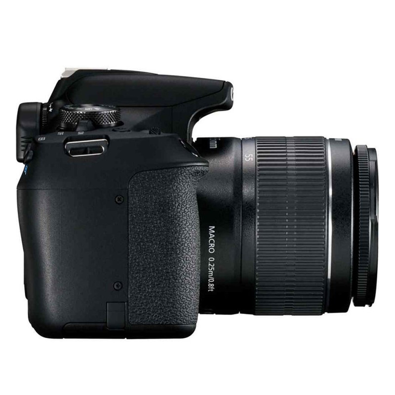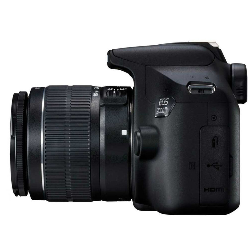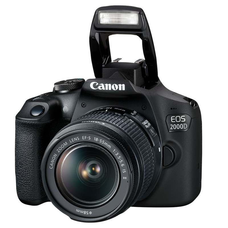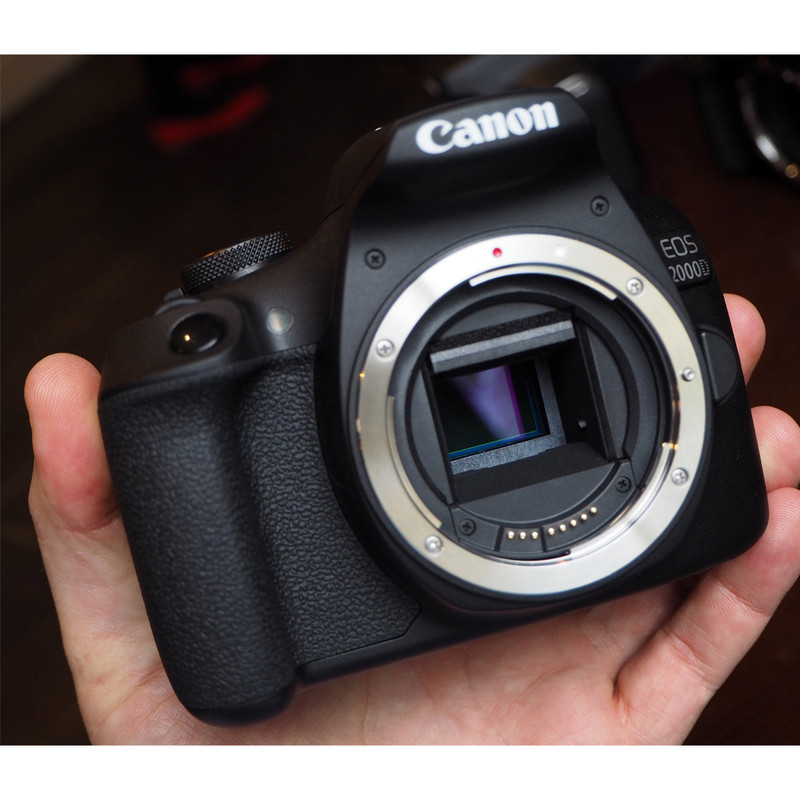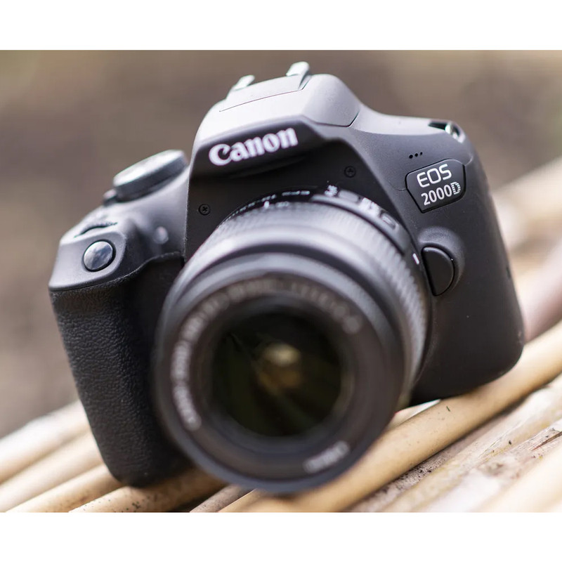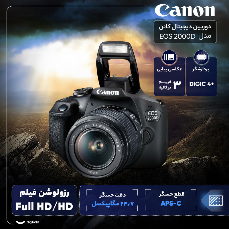 مدل «2000D» در سری دوربینهای مبتدی DSLR کانن قرار میگیرد. این مدل را کمپانی مشهور «کانن» (Canon) تولید کرده است و همراه آن لنز 18-55 میلیمتر ارائه میشود. 18-55 لنز نرمالی است که میتوانید با آن محدودهی قابلقبولی را هنگام عکاسی پوشش داده و عکسهای واضح و باکیفیتی ثبت کنید. برای توضیح دربارهی مشخصات فنی این دوربین باید گفت که 2000D با برخورداری از عالیترین سطح تنظیمات دستی و پیشرفتهترین تکنولوژیهای بهروز دوربینهای دیجیتال و همچنین قیمتی بهصرفه و مناسب، نزد مشتاقان عکاسی و آنان که در ابتدای راه عکاسی حرفهای هستند، از محبوبیت بسیار زیادی برخوردار است. دوربین کانن «EOS 2000D» از حسگر 24.1 مگاپیکسلی CMOS و پردازشگر تصویر +DIGIC 4 بهره میبرد که ترکیب این دو، ثبت تصاویری با کیفیت فوقالعاده را حتی در شرایط نوری ضعیف تضمین خواهد کرد. این دوربین خوشدست، 475 گرم وزن دارد. سمت راست بدنهی این دوربین، یک برآمدگی دارد تا راحتتر در دست جای گیرد. Canon EOS 2000D دارای یک صفحهنمایش LCD در اندازهی سهاینچ با دقت ۹۲۰۰۰۰ نقطه و چشمی اپتیکال است. عکسها و فیلمهای ضبطشدهی این دوربین، روی کارت حافظهی SD ذخیره میشوند. این دوربین قیمتی بهصرفه دارد و کانن با طراحی آن، کاربران مبتدی را نشانه گرفته است تا با استفاده از آن اولین قدم را در دنیای عکاسی بردارند و مهارتهای خود را به چالش بکشند. دوربین 2000D دامنهی حساسیت ۱۰۰-۶۴۰۰ دارد و البته تا ۱۲۸۰۰ هم قابلارتقا است. وجود قابلیت سلفتایمر باعث میشود بتوانید دوربین را در محل دخواه خود قرار داده و بین 2 تا 10 ثانیه بعد به صورت خودکار عکس بگیرد. درمجموع این دوربین برای کاربرانی که تازه عکاسی را شروع میکنند گزینهی مناسبی به حساب میآید.