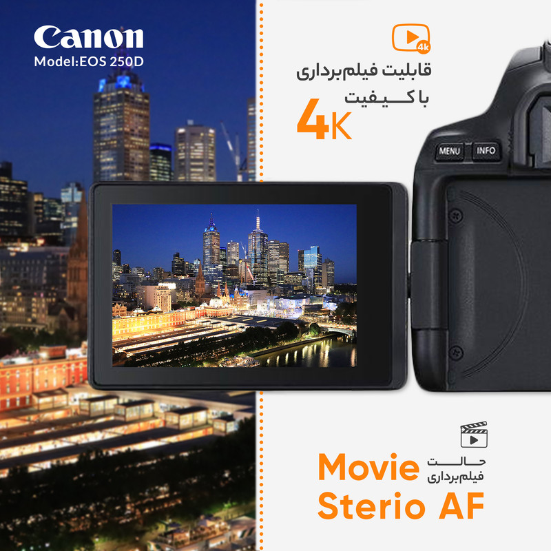 پس از ارائه‌ی موفق دوربین سطح مبتدی کانن 200D در سال 2017، این بار شاهد مدلی پیشرفته‌تر با نام Canon EOS 250D هستیم که با نام‌های دیگر Rebel SL3 و EOS Kiss X10 نیز شناخته می‌شود. دوربین کانن 250D در آوریل 2019 توسط کمپانی کانن معرفی شد؛ در واقع یک دوربین DSLR با سنسور 24٫1 مگاپیکسلی CMOS در قطع APS-C. شاید در نگاه اولیه بتوان گفت که یکی از ویژگی‌های منحصر بفرد دوربین کانن 250D ، قابلیت ضبط و...