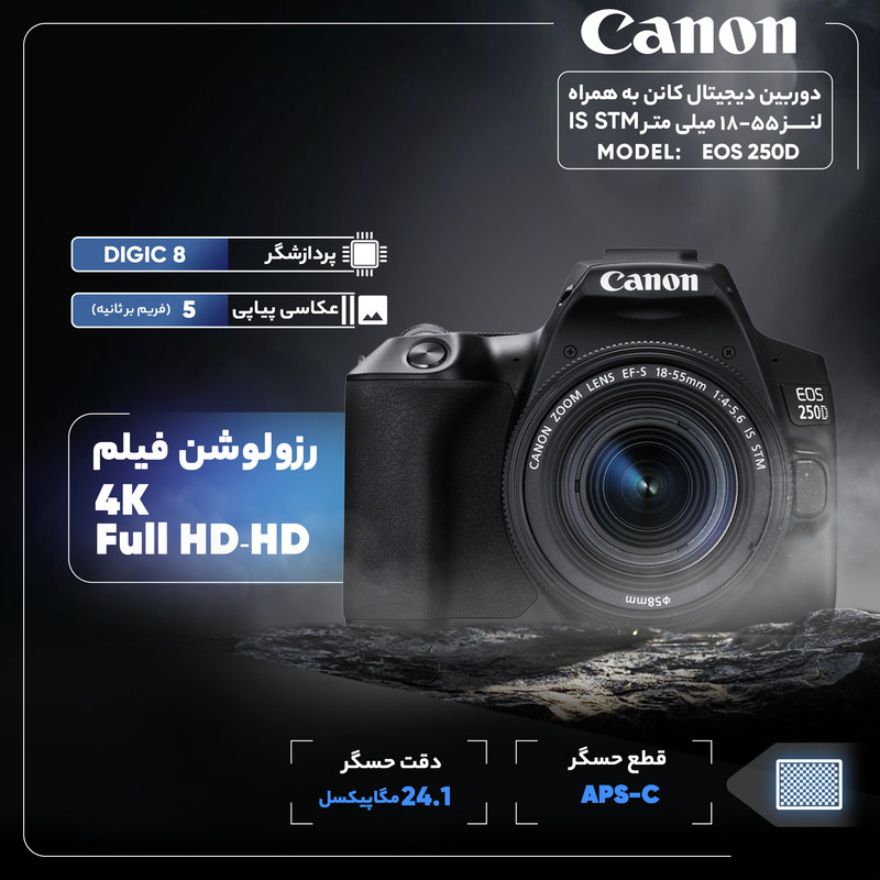 دوربین دیجیتال کانن مدل EOS 250D به همراه لنز 55-18 میلی متر IS STM