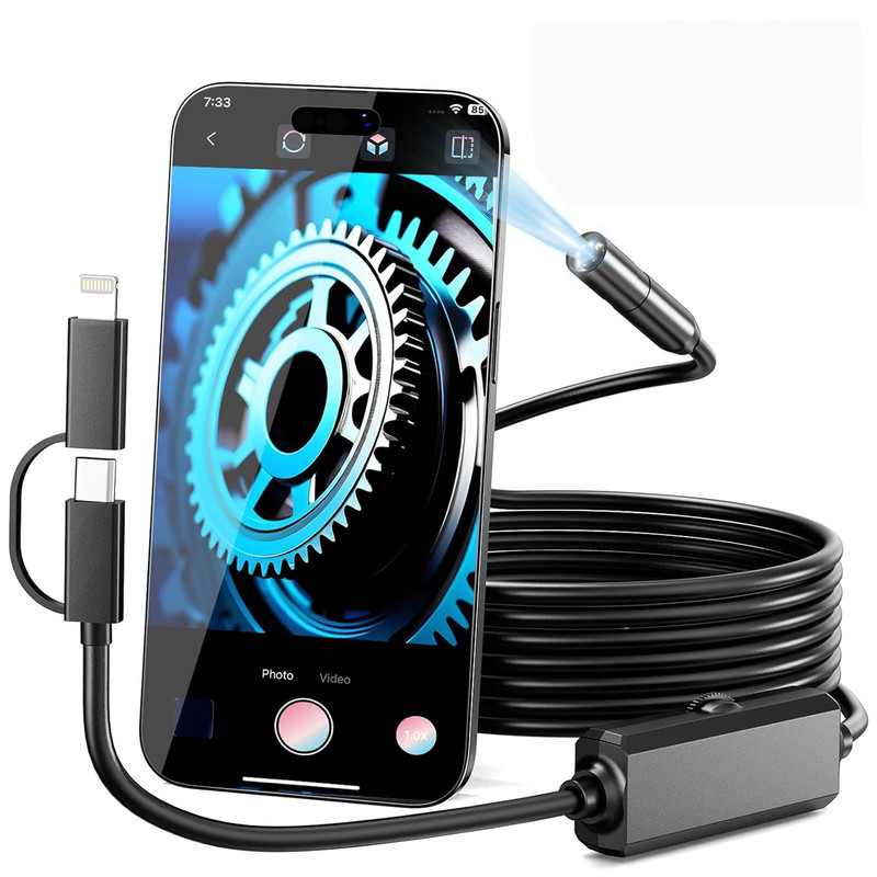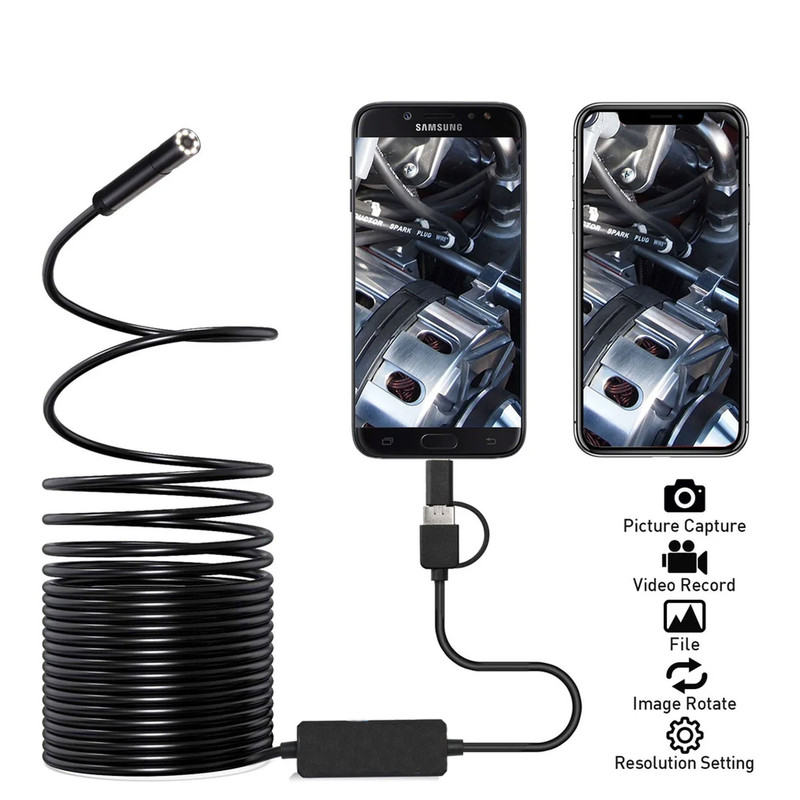 دوربین آندوسکوپی مدل فوکوس خودکار کد 10M 5MP HD NEW با کابل 10 متری 5مگاپیکسل از جدیدترین نمونه دوربین های آندوسکوپی موجود در دنیا با قدرت تصویر برداری HD و دوربین اتو فوکوس می باشد. در سال 2023 شرکت Inskam اقدام به ارائه انواع جدیدی از دوربین های شلنگی که دارای قابلیتهای ویژه ای هستند نمود. از جمله انواع دوربین های باکیفیت بالای 5 مگاپیکسل و قطرهای متفاوت دوربین با قابلیت منحصر بفرد اتوفوکوس و پروپ دوربین دارای استاندارد IP67 و کاملاً ضد آب که باعث می شود تا کاربران بتوانند در شرایط محیطی متفاوت از این دوربین های شلنگی اتوفوکوس نهایت استفاده را ببرند. این دوربین می تواند با استفاده از نرم افزار Ins kam تصویر را با کیفیت بالا در گوشی های هوشمند نمایش داده و امکاناتی همچون گردش تصویر بصورت 360 درجه ، امکان نمایش همزمان یک تصویر گرفته شده و مقایسه آن با تصویر زنده دوربین ، زوم تصویر و همچنین امکان تهیه عکس و فیلم در حین تصویربرداری از محل های دلخواه را در اختیار کاربر قرارداده و همزمان با آن در کارت حافظه ذخیره سازی نماید. یکی از موارد منحصر بفرد این دوربین قابلیت پرتاب نور تا 2 متر در شرایط کاملا تاریک و بدون نور است که با استفاده از 4 LED ویژه پرنور میسر می شود و می تواند در کاوشهای باستان شناسی و اکتشافات معدنی کاربرد موثری داشته باشد. این سری از دوربین های شلنگی اتوفوکوس 5 مگا پیکسلی در انواع مختلف در دسترس می باشند که مدل حاضر دارای یک دوربین با قطر پروب 11میلیمتر با قابلیت اتو فوکوس و رزولوشن 5 مگا پیکسلی بوده و با طول کابل 10 متری و کابل انعطاف پذیر با قابلیت اتصال به انواع موبایلهای اندروییدی عرضه می شود.